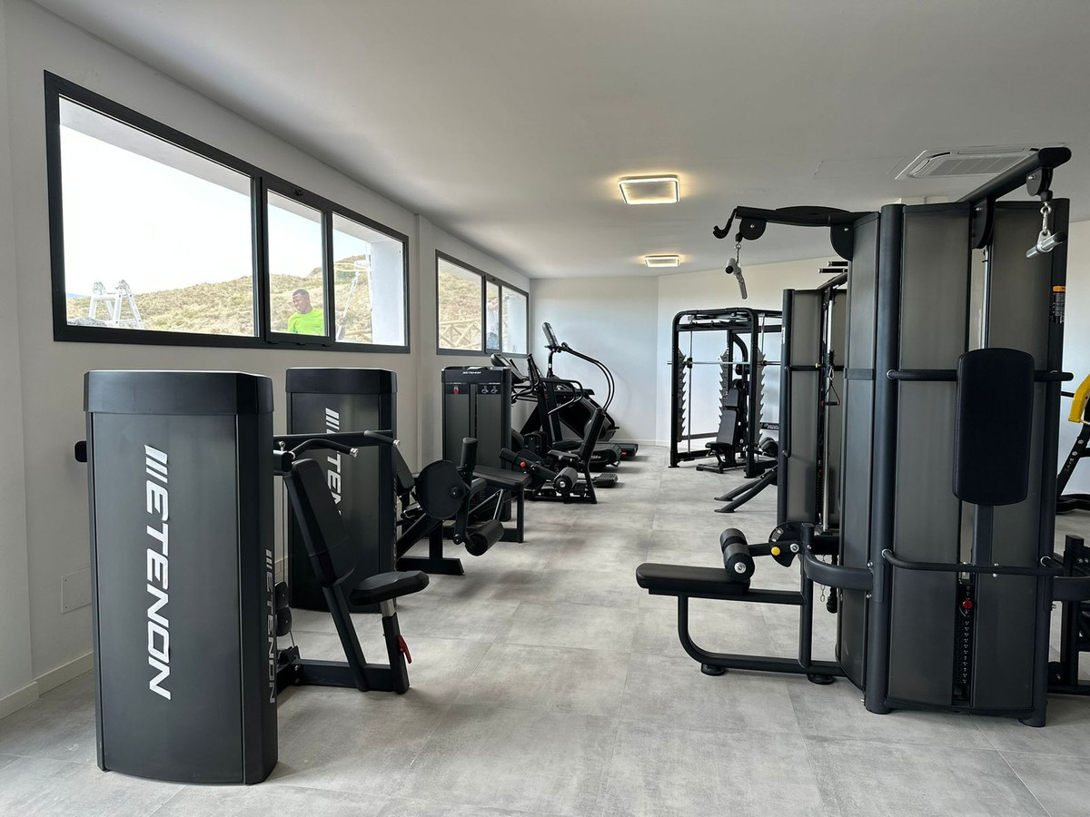 Le penthouse dispose de deux chambres spacieuses et de deux salles de bains, dont une attenante. Il comprend également un grand et lumineux salon-salle à manger avec cheminée et une cuisine ouverte. Depuis l'entrée, on accède au solarium privé, un vaste espace offrant une vue panoramique imprenable sur la mer, le golf et les montagnes.