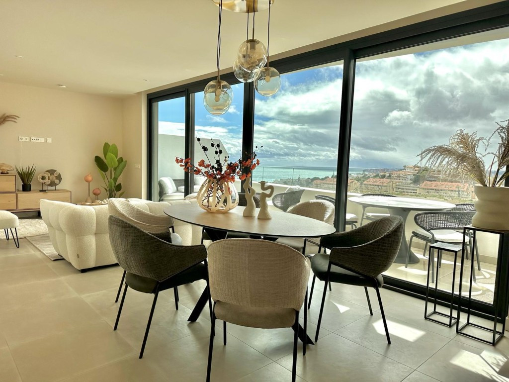 Penthouse neuf de style moderne à El Higueron, Fuengirola. Il comprend deux chambres, une salle de bain, une cuisine ouverte, un salon et une superbe terrasse avec vue panoramique sur la mer. Vendu meublé avec des meubles de qualité, il comprend une place de parking extérieure, une place de parking souterraine et un débarras. Climatisation réversible par aérothermie, stores électriques dans le salon, variateurs d'intensité dans toutes les pièces, connexion TV et internet dans le salon et les chambres, chauffage au sol, carrelage spécial et douche à effet pluie dans la salle de bain. Résidence sécurisée avec piscines et commodités. La plage est à 15 minutes à pied.