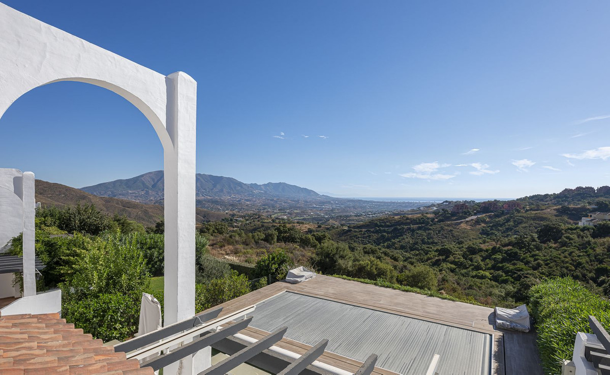 Découvrez la maison de vos rêves dans les collines d'Elviria Alta / La Mairena, où des vues à couper le souffle sur la mer et la montagne rencontrent la sérénité de la nature et l'élégance de la vie méditerranéenne.