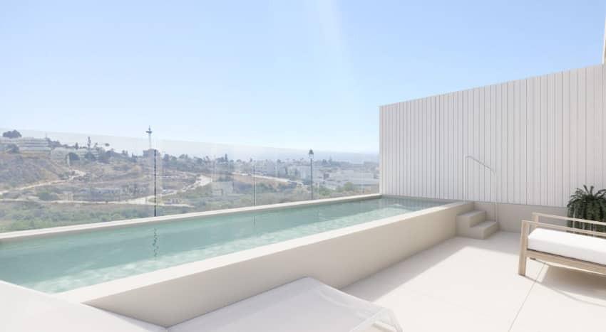 Le promoteur a choisi un terrain offrant une vue magnifique sur la mer, le golf et les montagnes. Ce projet comprend seulement 10 villas jumelées de 4 chambres, 3 ou 4 salles de bains, 1 ou 2 toilettes et un bureau pouvant servir de buanderie. Les villas d'angle disposent de leurs propres jardins et piscines d'eau salée privées. Les villas centrales bénéficient d'une piscine sur le toit. Les espaces ouverts et fonctionnels constituent sans conteste les points forts des maisons, reliant les terrasses et leurs magnifiques vues sur la mer, le golf et les montagnes.