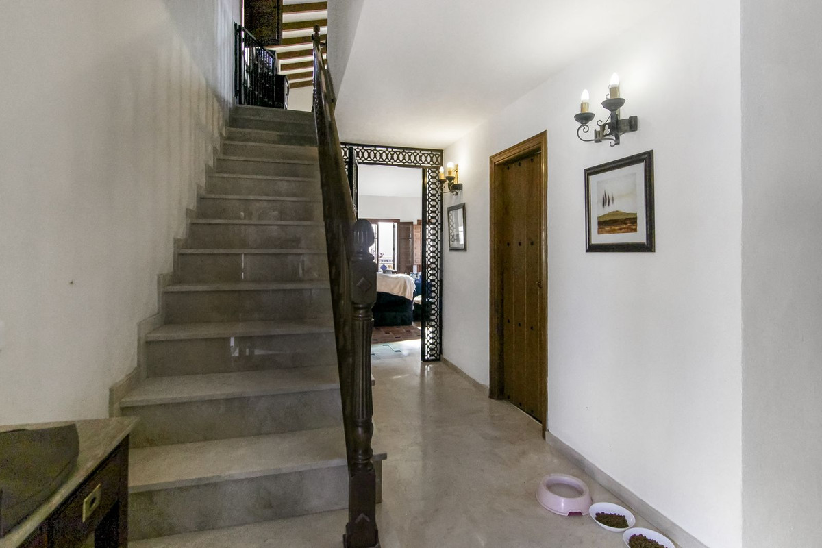 Living room is breathtaking, very spacious with high ceiling and big fireplace. Rustic style beautiful wooden framed windows, and indoor shutters, views to the countryside. A lot natural light and access to the outdoor Andalucian patio, where you can continue to the outdoor terrace. There is a potential and space to make a plunge pool. A lot of options for this idea.
