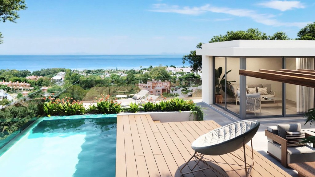 À Cabopino, à l'est de Marbella, il y aura 44 beaux et luxueux appartements neufs de 2 et 3 chambres de 123 m2, avec vue sur la mer dans une belle forêt de pins.