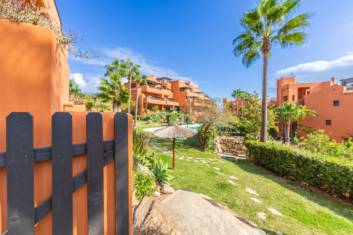 GROUND-FLOOR APARTMENT WITH LARGE TERRACE AND TOURIST LICENSE NEAR THE SEA. Privileged location in a charming Mediterranean-style complex, just 200 m from the beach and only a 5-minute drive from Estepona and the vibrant Duquesa Marina, where you’ll find all kinds of services, restaurants, and leisure options. This beautiful ground-floor apartment stands out for its brightness, thanks to its southeast orientation, and for its magnificent newly renovated terrace, featuring glass curtains, an outdoor kitchen area, and elegant parquet flooring that adds warmth and style.
