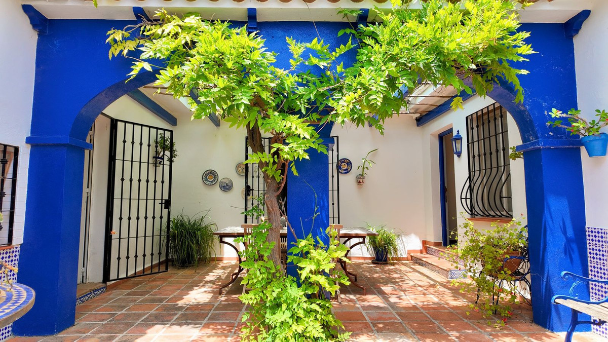 Upon arrival, you're welcomed into a traditional Spanish patio – perfect for a quiet breakfast or morning coffee in the sun.