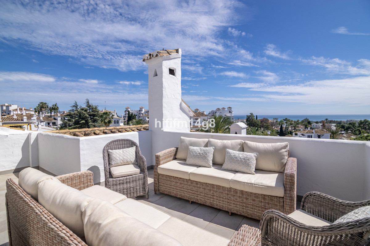 Introducing a rare opportunity to purchase a spacious four-bedroom penthouse in the sought-after community of Aldea Blanca, offering spectacular sea views and an unbeatable location. Aldea Blanca is one of Nueva Andalucía’s most desirable residential complexes, situated just steps from Centro Plaza, close to all amenities, and within walking distance of Puerto Banús and the beaches.
