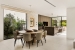 On the main level, the master suite serves as a private sanctuary, featuring an elegant en-suite bathroom and direct access to the lush gardens and heated swimming pool. The living area is nothing short of spectacular, with a soaring double-height ceiling that enhances the sense of space and light. Flowing seamlessly into the state-of-the-art kitchen and dining area, this space is designed for both relaxation and entertaining. Step outside to a covered terrace with a barbecue and dining area—ideal for enjoying long Mediterranean evenings with family and friends.
