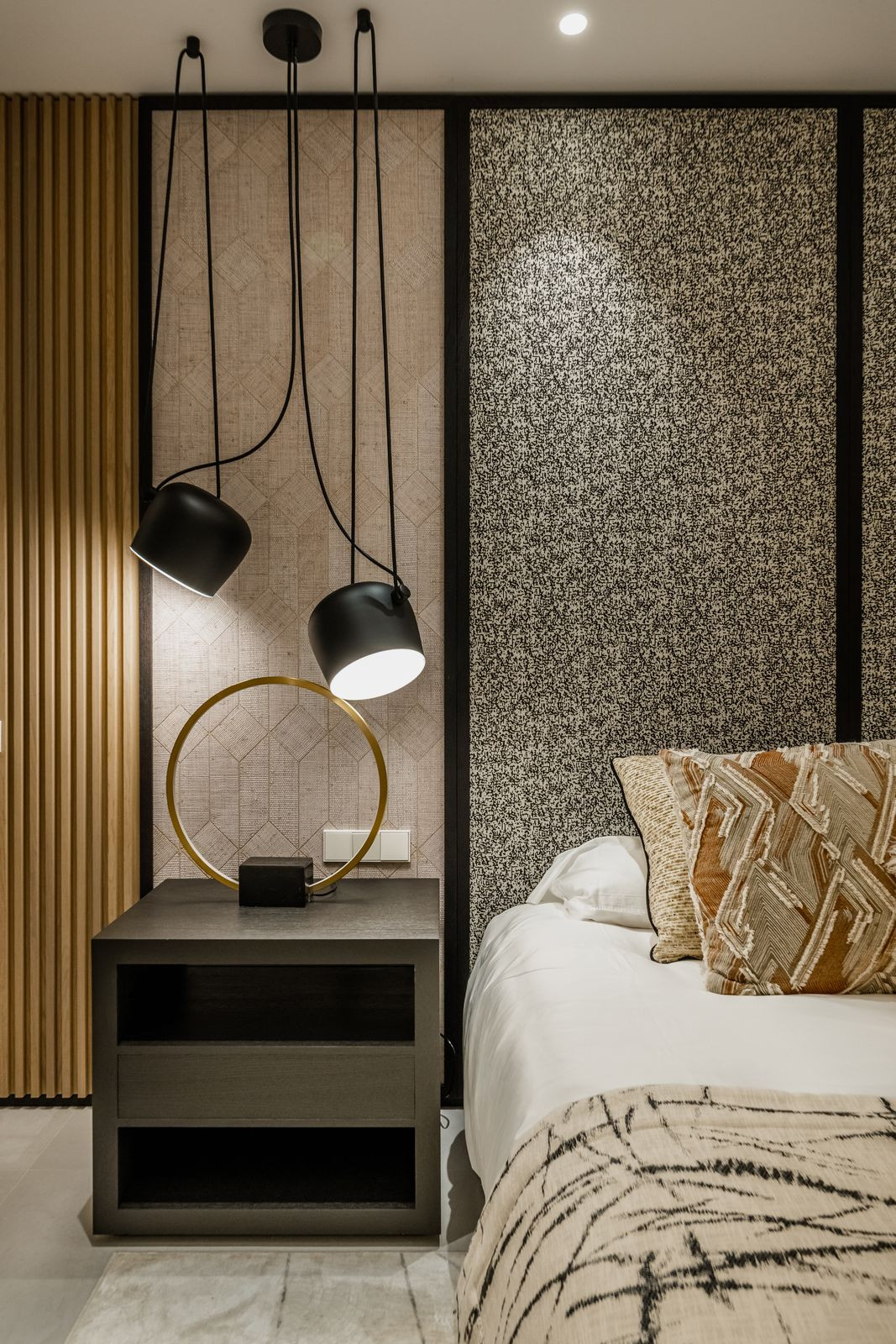 geometric exterior, and chic natural materials in soothing