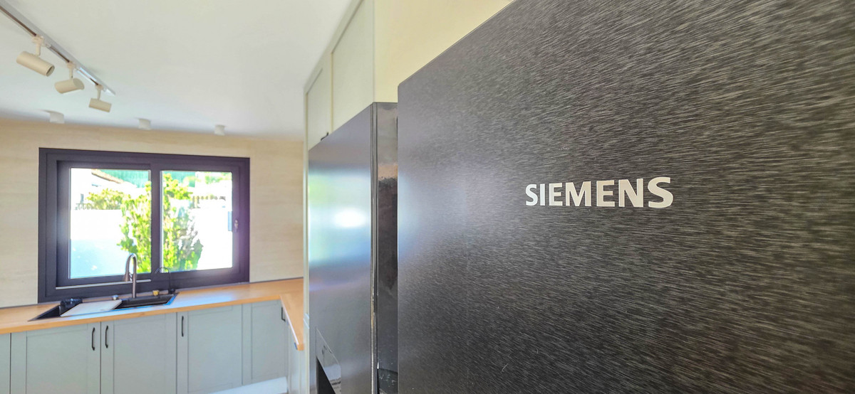 La villa comprend quatre chambres spacieuses et trois salles de bains, chacune dotée de finitions et d'équipements de qualité. De nombreux espaces de rangement sont disponibles dans toute la maison. Les salles de bains bénéficient d'un chauffage au sol, tandis que des climatiseurs individuels neufs ont été installés dans chaque pièce pour un confort optimal en toute saison. La cuisine est équipée d'appareils haut de gamme et son agencement ouvert laisse entrer la lumière naturelle dans toute la maison.