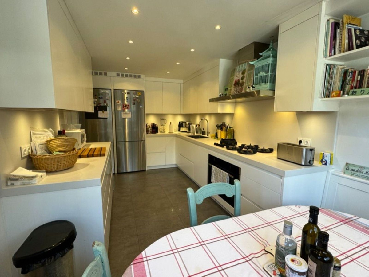 Cette maison de ville s'étend sur trois étages, auxquels s'ajoute une terrasse sur le toit, le tout avec des finitions haut de gamme. Au rez-de-chaussée, vous trouverez un vaste séjour/salle à manger s'ouvrant sur une grande véranda et un jardin privatif, une cuisine entièrement équipée et des toilettes invités. Le premier étage abrite la suite parentale, avec salle de bains privative et terrasse, ainsi que deux chambres supplémentaires, chacune avec son propre balcon, partageant une salle de bains. La terrasse sur le toit est un véritable atout, offrant un barbecue intégré et une vue imprenable sur la mer.