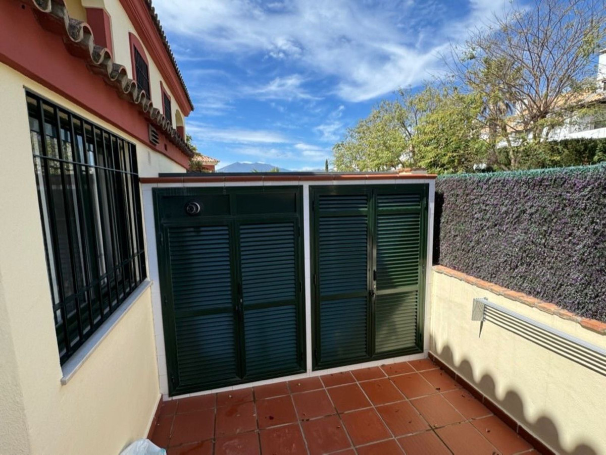 Cette maison de ville exposée plein sud se situe dans le prestigieux quartier du Golden Mile à Marbella, à deux pas des luxueux hôtels Puente Romano et Marbella Club, ainsi que de leurs clubs de plage exclusifs. Elle bénéficie également d'une situation idéale, à proximité du centre de Marbella et du chic Puerto Banús. Nichée au sein d'une résidence sécurisée alliant design moderne et charme méditerranéen classique, cette propriété est entourée de magnifiques jardins luxuriants plantés de palmiers et offre un accès à deux piscines.