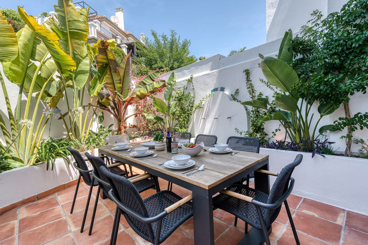 Nichée au sein d'une résidence privée et sécurisée sur le Golden Mile de Marbella, cette somptueuse maison de ville/villa d'angle incarne l'essence de l'architecture andalouse classique avec une touche de luxe contemporain. Située au cœur du prestigieux Golden Mile de Marbella, elle offre une intimité totale, un design intemporel et un accès direct aux clubs de plage et restaurants gastronomiques les plus emblématiques de la côte. Cette résidence privée et sécurisée, composée de seulement 24 maisons, est entourée de jardins méditerranéens, de fontaines et d'une piscine sculptée. Avec une sécurité 24h/24 et un service d'entretien sur place, elle offre la tranquillité d'un havre de paix à quelques pas de la plage et du Paseo Marítimo (1 km, 16 minutes à pied).
