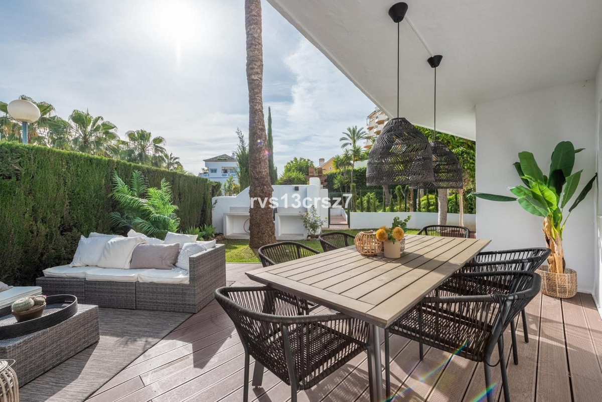 Magnifique appartement rénové au rez-de-chaussée, dans l'urbanisation Jardines de la Andalucía à Nueva Andalucía, à proximité des restaurants, des boîtes de nuit, des supermarchés et du célèbre marché du samedi.