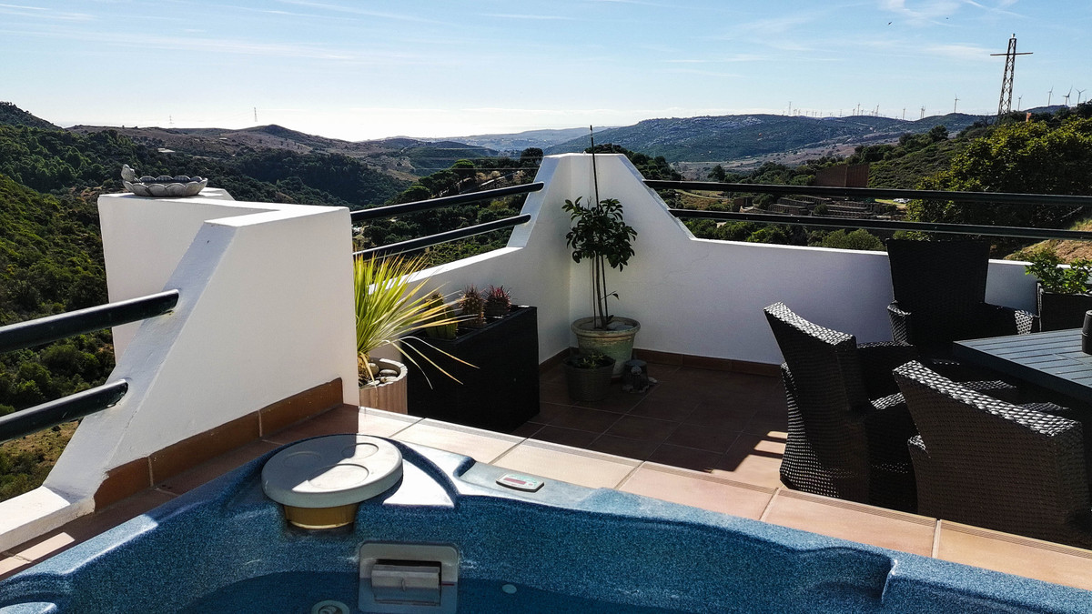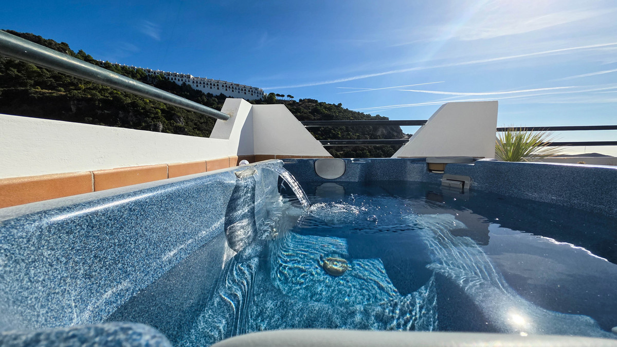 Cette propriété comprend trois chambres, deux salles de bains et des toilettes invités, judicieusement réparties dans des espaces de vie lumineux et aérés. Plusieurs balcons offrent des points de vue exceptionnels, tandis que le solarium privé avec jacuzzi invite à la détente et à profiter du calme de ce cadre pittoresque.