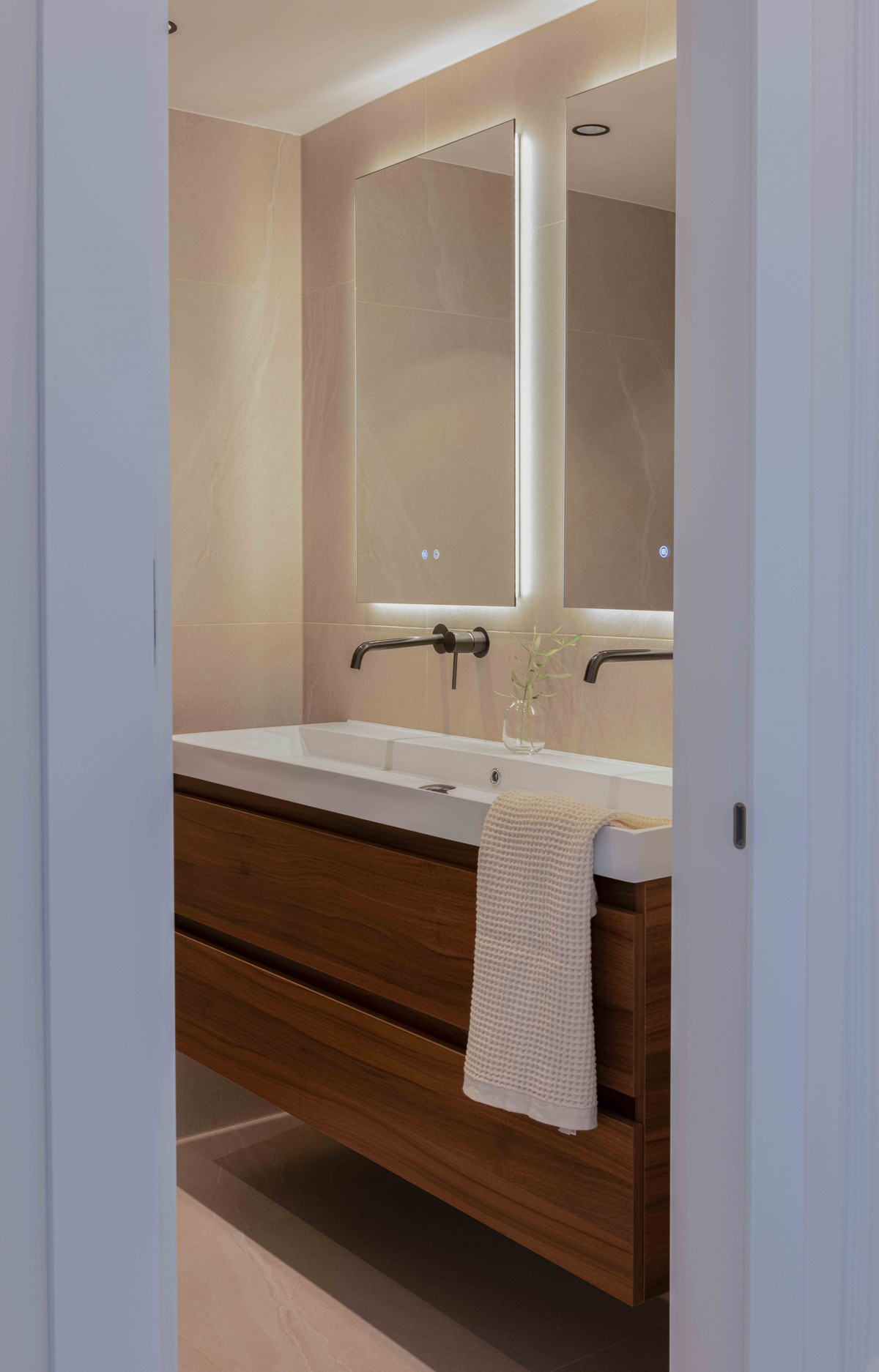 Découvrez ce superbe penthouse d'angle dans la résidence prisée La Torre, à Los Arqueros, entièrement rénové avec des finitions contemporaines élégantes et un savoir-faire raffiné. La cuisine ouverte communique harmonieusement avec le vaste séjour, créant un espace baigné de lumière où se mêlent avec brio sophistication et confort, une transformation signée Elliott James. Parmi ses trois chambres magnifiquement aménagées et ses deux salles de bains élégantes, l'une a été intelligemment transformée en bureau, idéal pour les entrepreneurs travaillant à distance ou pour ceux qui préfèrent un espace de travail à domicile. Cet aménagement astucieux renforce la polyvalence du bien tout en préservant son atmosphère de calme et de luxe.