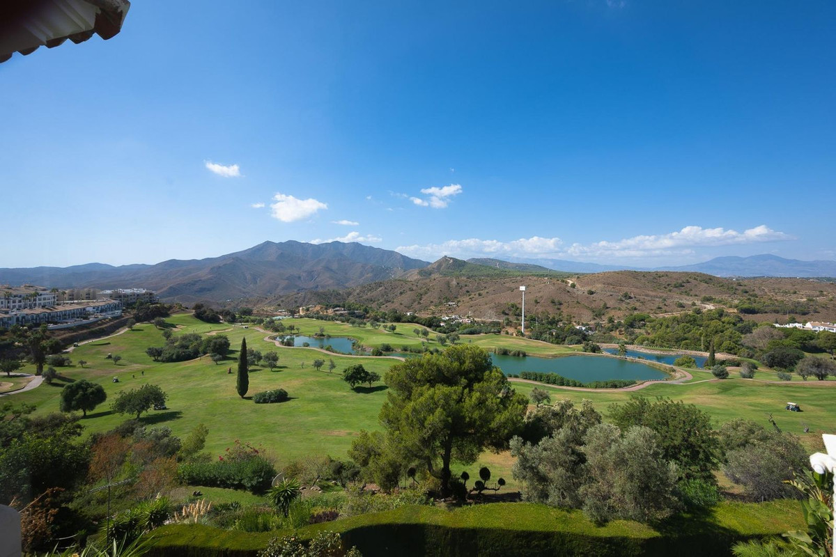 Magnifique duplex à Alhaurin Golf, offrant une vue exceptionnelle sur le parcours et en parfait état. Spacieux, il se compose d'un vaste séjour-salle à manger avec cheminée, s'ouvrant sur une superbe terrasse entièrement vitrée offrant une vue spectaculaire sur le golf. On y trouve également une grande cuisine entièrement équipée, deux chambres doubles (dont une avec salle de bains privative et accès direct à la terrasse), ainsi qu'une deuxième salle de bains. À l'étage, une troisième chambre, une autre salle de bains et un second salon d'été, idéal pour les réunions de famille, constituent un atout supplémentaire. De là, on accède à une belle terrasse avec espace barbecue et une vue panoramique à 360°. Un parking, un cellier, une piscine et des jardins communs complètent ce bien. Une propriété aux multiples possibilités et au fort potentiel.