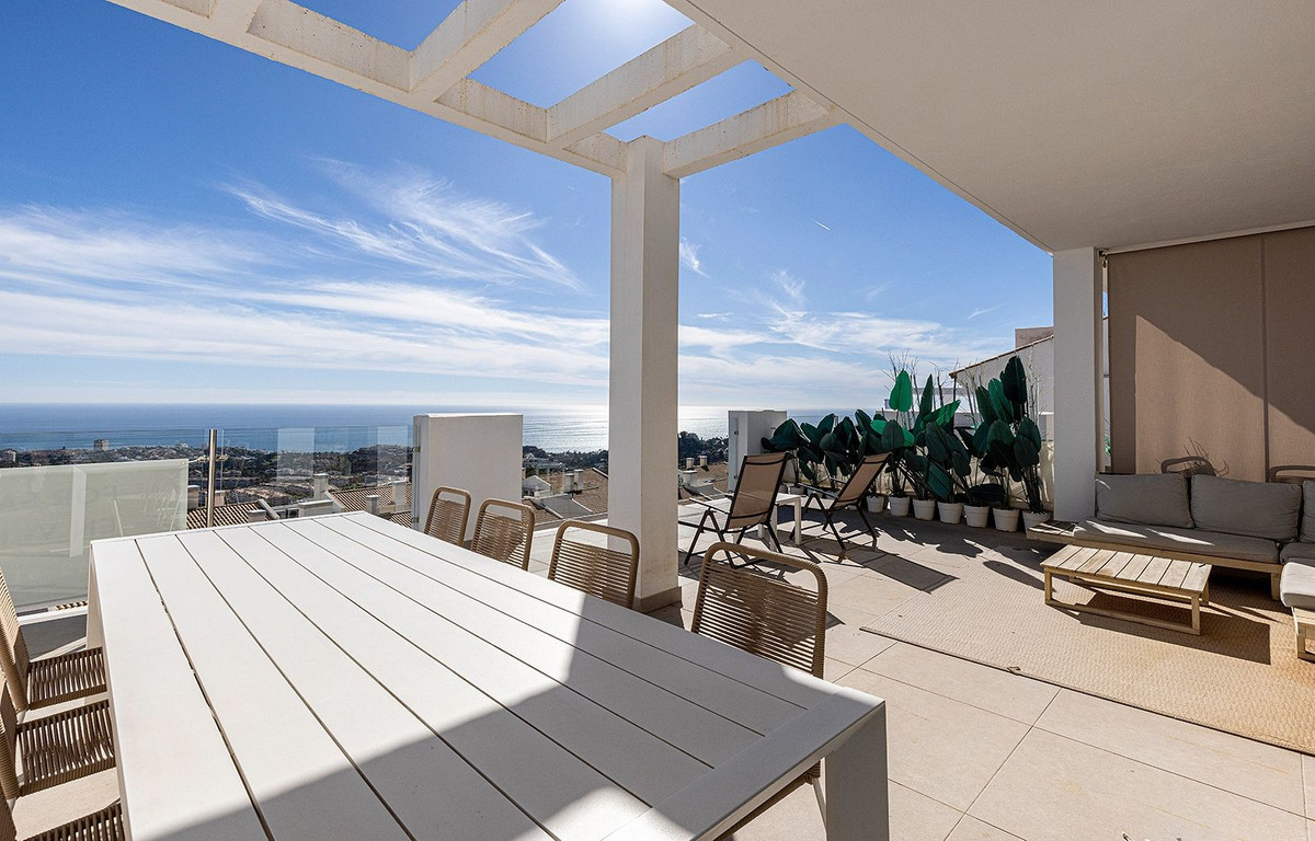 Cet élégant penthouse en duplex bénéficie d'une vue panoramique imprenable sur la mer et d'un emplacement privilégié à Benalmádena, à quelques minutes en voiture de la plage et du pittoresque village de Benalmádena Pueblo.