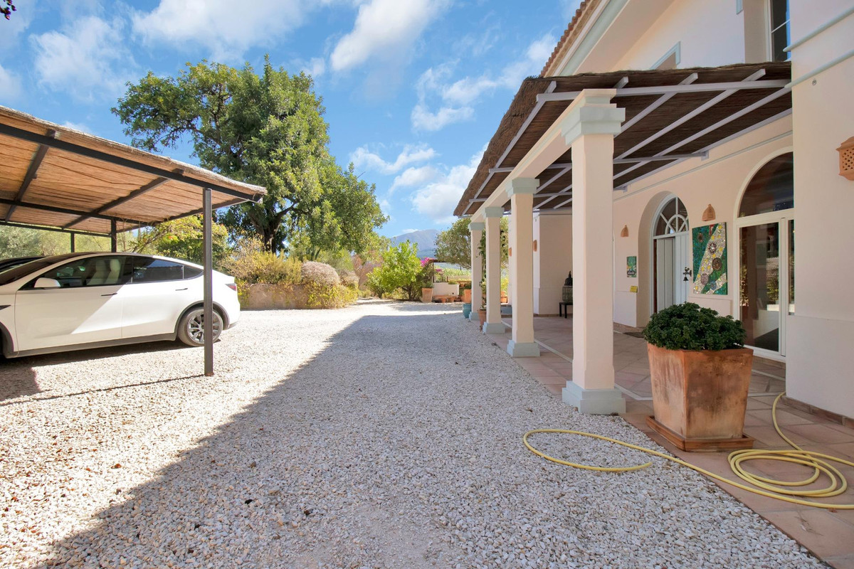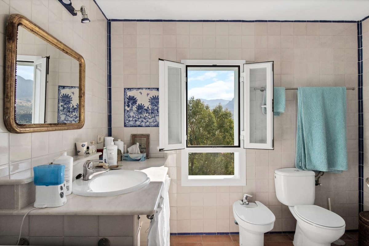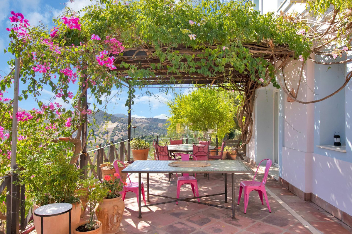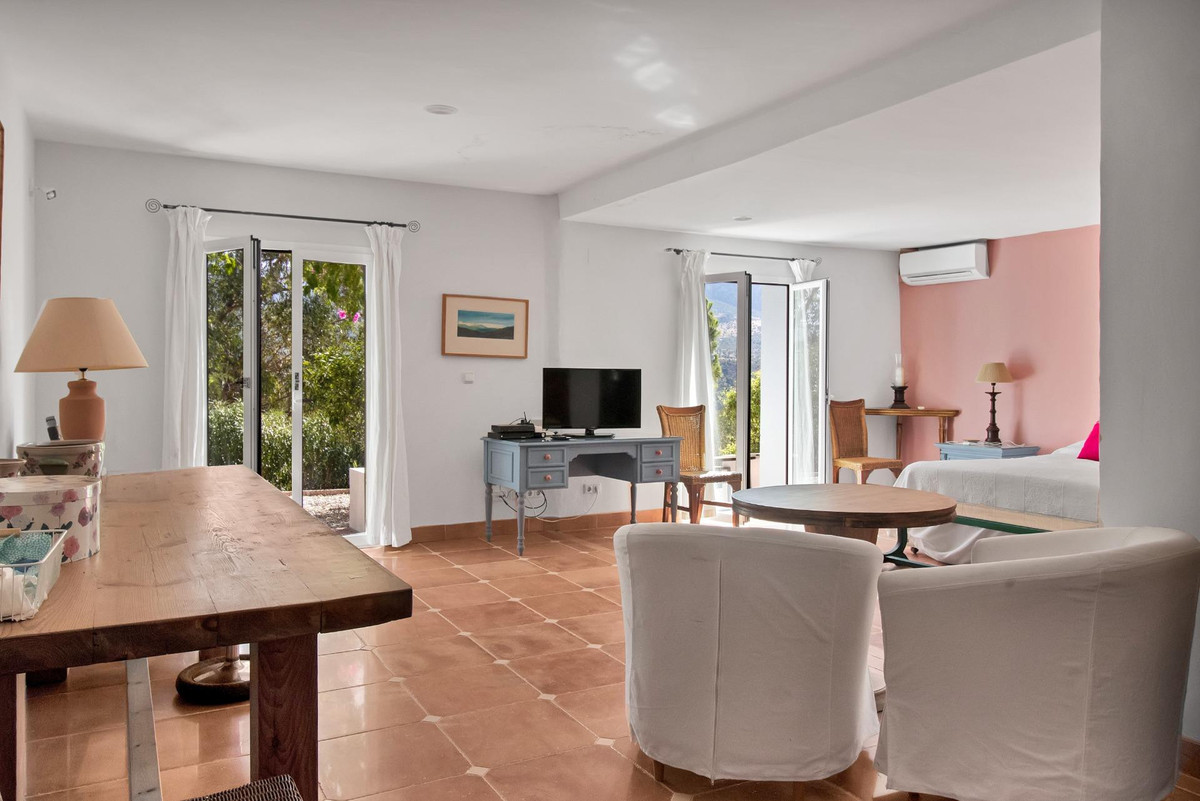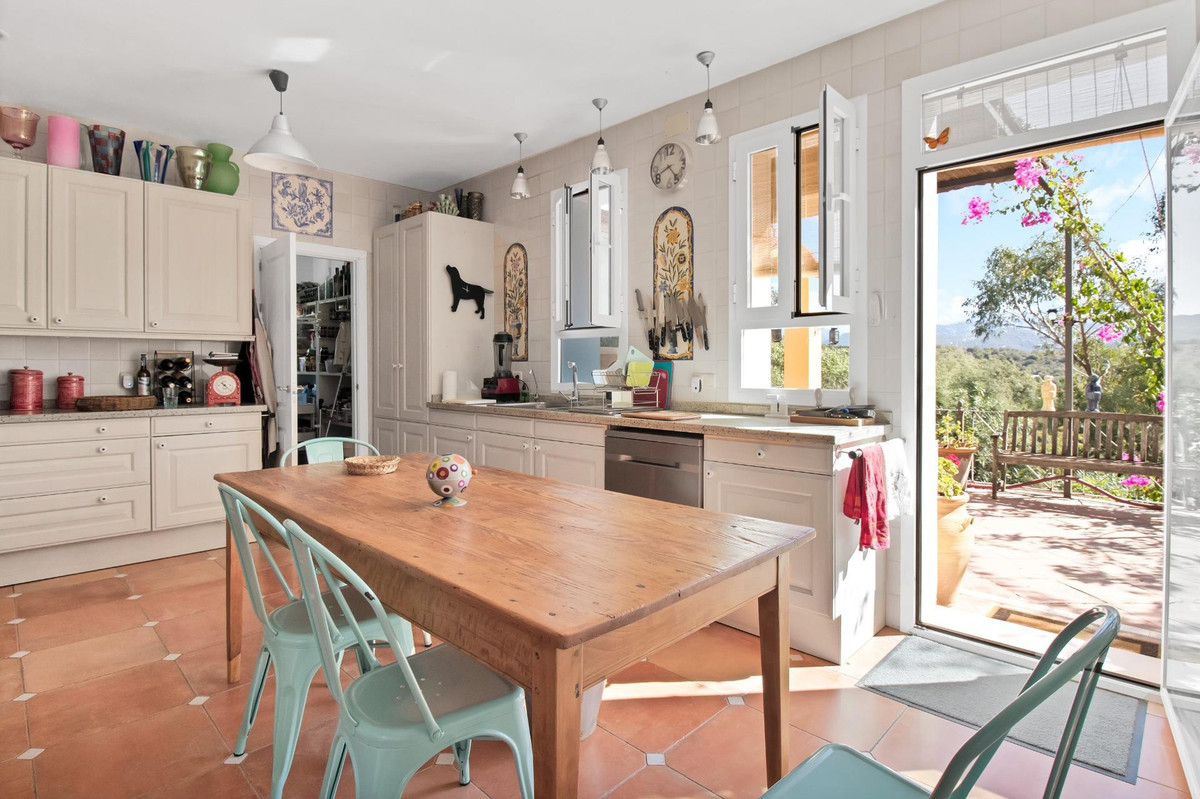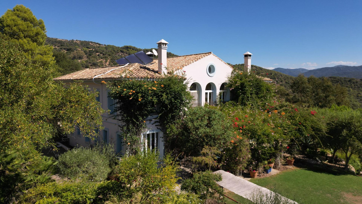 Une maison de campagne unique, nichée dans un écrin de verdure luxuriante, entourée de plantes vivaces et offrant une vue imprenable sur l'horizon. Unique par son esthétique, qui évoque une villa toscane, elle est conçue pour la vie de famille, avec de vastes espaces baignés de lumière où intérieur et extérieur se fondent harmonieusement, où la lumière et le paysage sont les maîtres mots. Unique également par sa modernité et son autonomie énergétique, cette maison offre un confort exceptionnel en toute saison. Chauffage au sol, climatisation… Ces équipements sont assurés par une importante installation de panneaux solaires de plus de 56 m² (stratégiquement placée et invisible de l'extérieur), une installation solaire de 24 kW, deux convertisseurs de 10 kW et une batterie de 20 kW, ainsi qu'une borne de recharge pour véhicule électrique. De plus, la propriété bénéficie d'un approvisionnement en eau par puits, la région étant riche en eau. Une rivière coule à proximité, offrant la possibilité de se baigner en été. Construite en 2000, la maison est orientée plein sud. La maison comprend sept chambres avec salles de bains privatives et plusieurs espaces polyvalents (bureau, atelier, bibliothèque, etc.). Elle est entourée d'un vaste jardin luxuriant, d'une grande pelouse et d'une charmante piscine avec de larges terrasses ensoleillées et un bain de glace pour les plus courageux. À l'arrière, on trouve un grand potager et un poulailler. Une allée privée, bordée de cyprès, mène à la maison et offre un grand parking. La porte principale s'ouvre sur un hall d'entrée lumineux qui dessert le salon avec de grandes portes vitrées. Attenante, une généreuse terrasse couverte se transforme en pièce à vivre en été. Une salle à manger séparée communique avec la cuisine allemande SieMatic entièrement équipée, ainsi qu'avec un cellier comprenant trois réfrigérateurs et un congélateur. La cuisine et la salle à manger s'ouvrent sur une terrasse exposée à l'est, aménagée avec une cuisine d'été. La vue sur la Sierra Crestellina y est à couper le souffle. L'autre aile du rez-de-chaussée abrite une bibliothèque ou une salle de télévision, entièrement équipée d'étagères. On y trouve également une grande chambre d'amis avec cheminée, placards intégrés et salle de bains privative. Cette chambre donne sur le jardin. Au premier étage se trouve un palier spacieux pouvant servir de salon supplémentaire ou d'atelier d'artiste. La grande suite parentale, avec son plafond mansardé, comprend un dressing avec puits de lumière et une salle de bains privative. Les fenêtres offrent une vue sur les jardins et la profusion de fleurs qui ornent la terrasse couverte du rez-de-chaussée. La suite parentale communique avec une autre chambre dotée d'une salle de bains. Cette dernière peut servir d'annexe à la suite principale, mais est également accessible depuis le palier et peut être utilisée comme chambre indépendante. À ce même étage se trouvent également un grand bureau (ou chambre supplémentaire) avec étagères intégrées et, de l'autre côté du palier, deux autres chambres avec salle de bains privative.Le rez-de-jardin, d'une superficie de plus de 300 m², comprend une buanderie, un grand atelier/studio, une cave, un débarras et un local technique. À l'est se trouve un appartement de service avec cuisine-séjour, chambre, salle de bains et terrasse et jardin privatifs. Une autre grande suite d'invités, avec salle de bains et kitchenette, s'ouvre également sur le jardin. Cette luxueuse maison de campagne à vendre en Andalousie offre de nombreux atouts : piscine extérieure, trois cheminées, arrosage automatique des jardins, parquet et sols en travertin, fenêtres à double vitrage et espace barbecue. Carrelage décoratif portugais. De vastes espaces sont aménagés pour un potager. L'eau provient d'un puits privé. Cette propriété exclusive est située à seulement 15 minutes de Gaucin, 30 minutes de la plage, 45 minutes de Marbella et Sotogrande, et à 1h30 de l'aéroport international de Malaga.