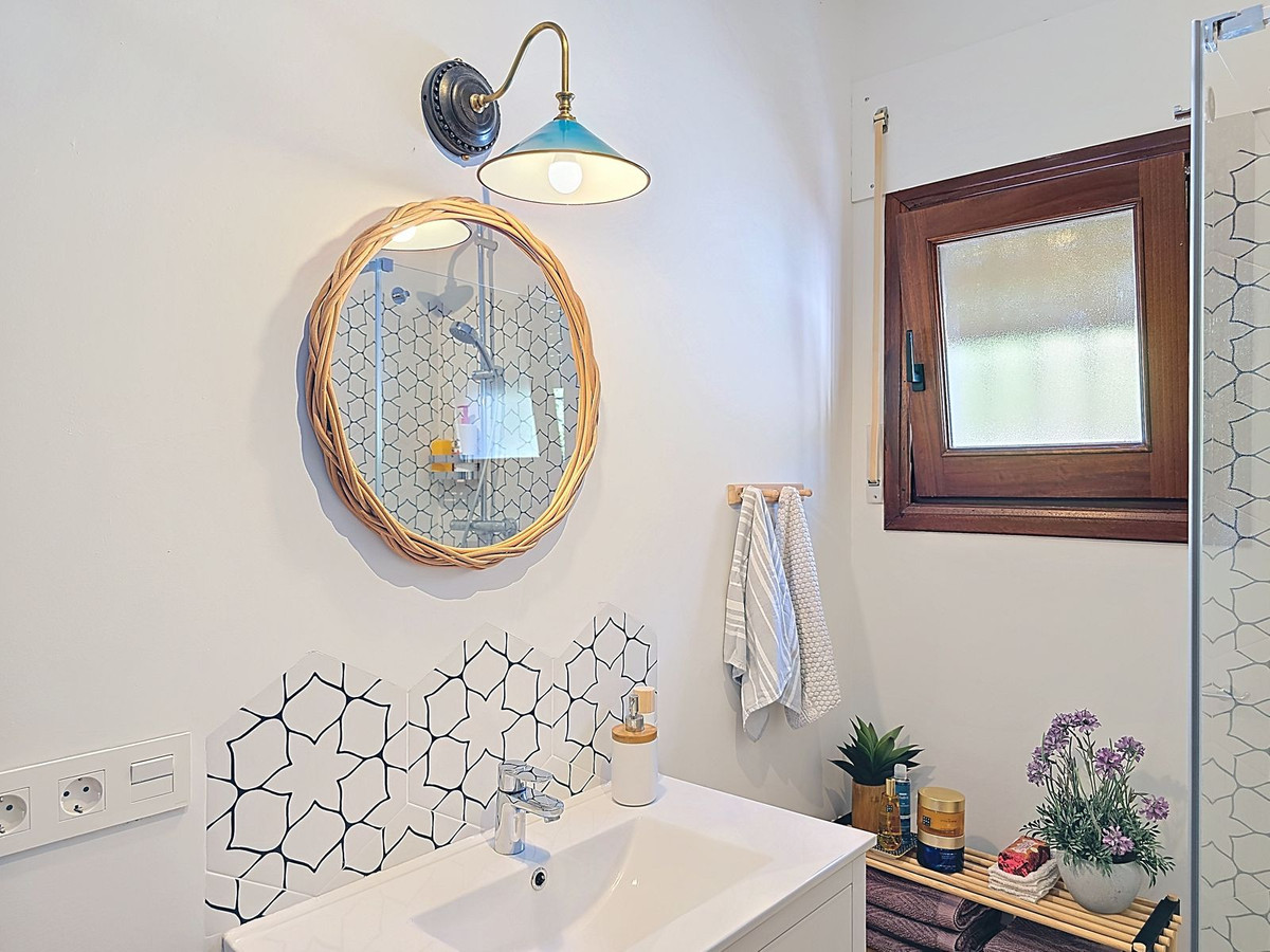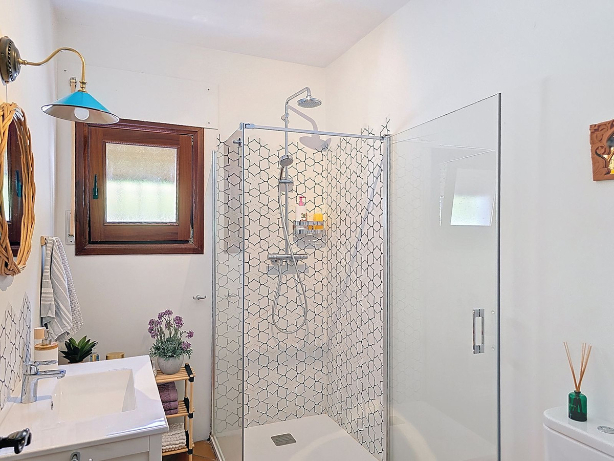 La maison principale comprend trois chambres lumineuses et une salle de bains moderne récemment rénovée. L'espace de vie ouvert communique harmonieusement avec une cuisine entièrement équipée et de vastes terrasses, créant ainsi une transition fluide entre l'intérieur et l'extérieur. Parmi les améliorations récentes, on note l'installation de nouveaux climatiseurs et de robinetterie Grohe haut de gamme dans la salle de bains.