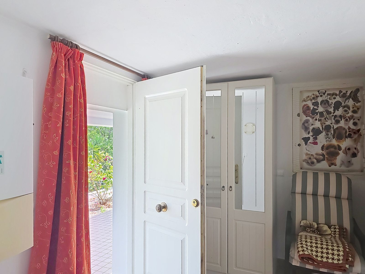 L'intérieur est équipé de placards intégrés, du chauffage central au gaz et de la climatisation, garantissant un confort optimal en toute saison. On y trouve également une buanderie/dressing (anciennement une chambre), une pièce à repasser (anciennement une petite chambre) et un bureau avec entrée indépendante, offrant ainsi de nombreuses possibilités d'aménagement : espace de vie supplémentaire, hébergement d'invités ou bureau pour le télétravail.