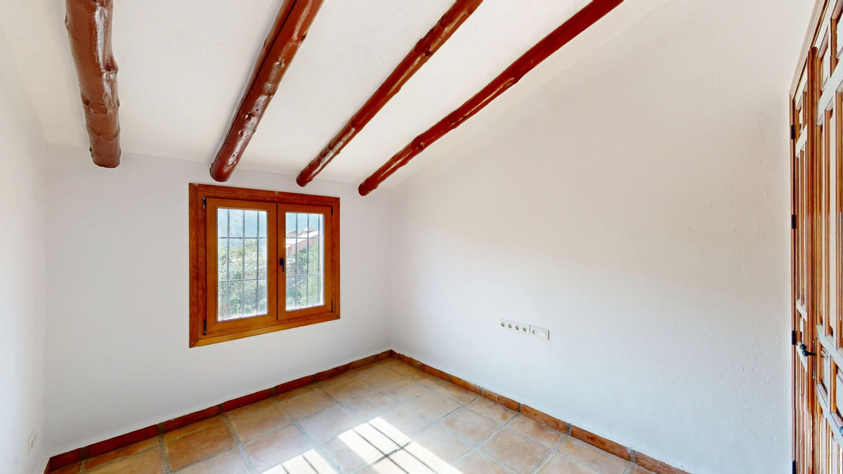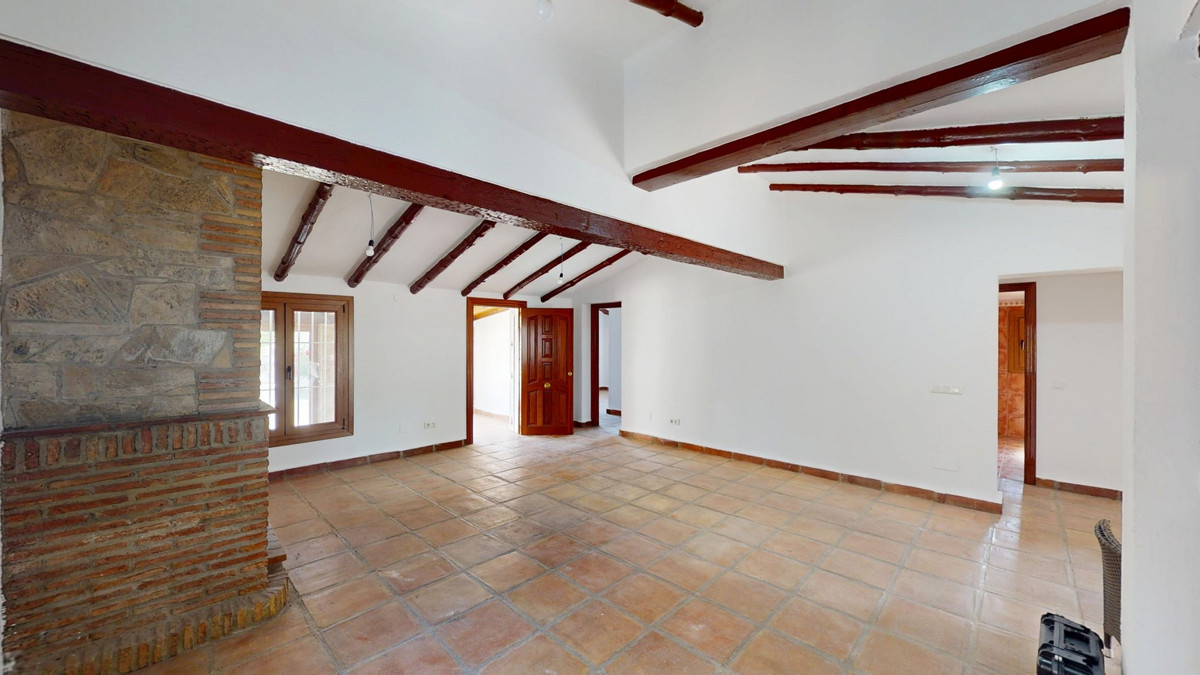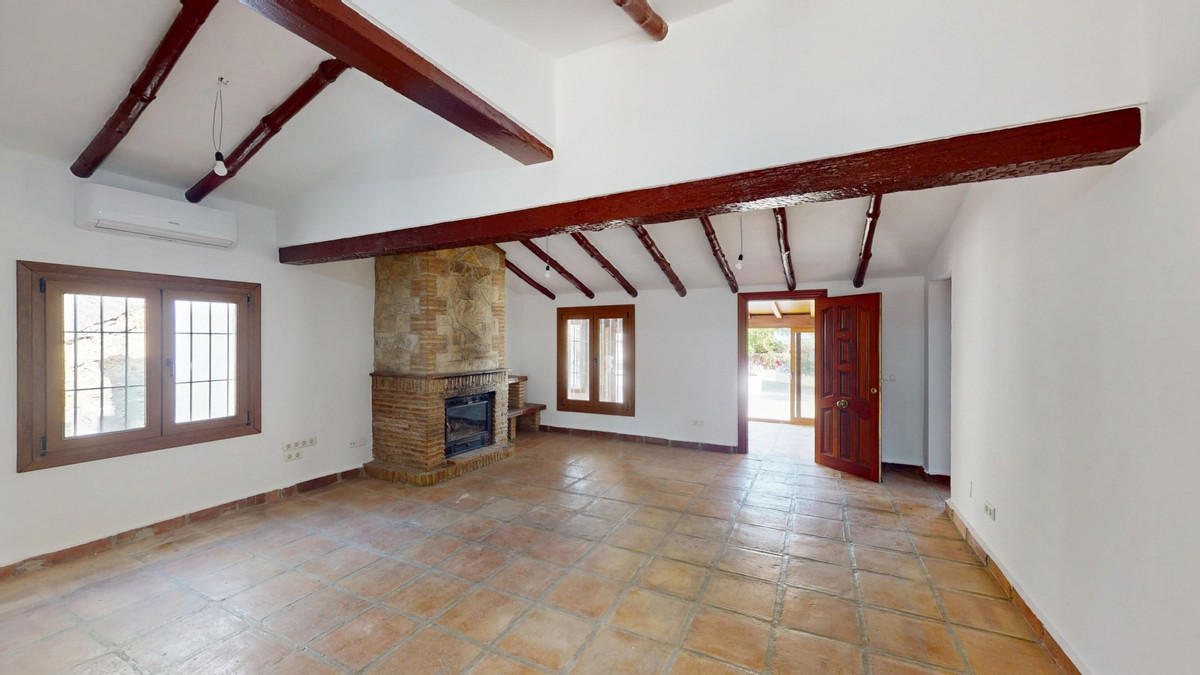 This delightful Spanish villa, located in Viñuela, Málaga, offers a perfect blend of traditional charm and modern comfort. The single-story property spans 167 m2 and features three bedrooms, including a spacious 13.9 m2 primary bedroom, and two bathrooms. Upon entering, you're greeted by the home's most striking feature: beautiful terracotta tile flooring that runs throughout, creating a cohesive and authentic Spanish ambiance. The living areas are characterized by their high, sloping ceilings with exposed wooden beams, adding rustic charm and visual interest to the space. The heart of the home is undoubtedly the living room, which boasts a magnificent stone fireplace as its centerpiece. Large windows and glass doors in this area, as well as in the bedrooms, allow ample natural light to flood the interiors while offering picturesque views of the surrounding landscape. The kitchen presents a harmonious blend of traditional and contemporary design. Modern appliances and sleek cabinetry are juxtaposed against the rustic ceiling beams, creating a functional yet aesthetically pleasing culinary space. The bathrooms, while not extensively detailed in the images, appear to have been updated with modern fixtures. Storage is thoughtfully incorporated throughout the home, with built-in wooden wardrobes in the bedrooms that maintain the overall rustic aesthetic. The property also features two patios, offering delightful outdoor spaces for relaxation and entertainment. A unique aspect of this villa is its attention to decorative details, such as the ornate tile borders in the hallways and bathrooms, which add a touch of traditional Spanish flair to the otherwise simple and elegant interiors. Outside, the villa boasts a beautiful pool and a charming outdoor area perfect for enjoying the Mediterranean climate. Overall, this Málaga villa offers a warm, inviting atmosphere that beautifully marries traditional Spanish architectural elements with modern comforts, creating a truly special living space. We are pleased to be able to present this dream property to you soon, either personally or via virtual viewing. Because this world is unique - just like our Axarquía. In Andalusia. On the Costa del Sol. Here, on the sunny side of life...