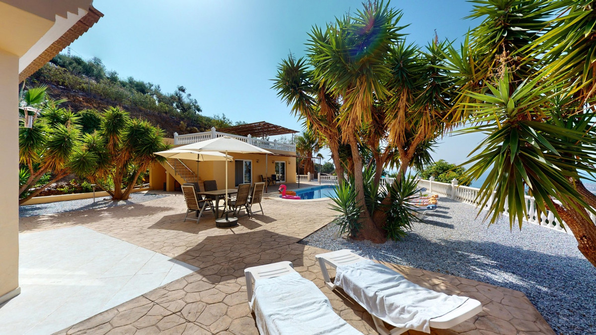 Découvrez l'incarnation même de la vie méditerranéenne avec cette finca exclusive à Algarrobo, située sur la magnifique Costa del Sol. Nichée dans une intimité absolue, cette propriété unique offre une vue panoramique à couper le souffle sur la Méditerranée scintillante et la campagne andalouse environnante. Avec une surface habitable totale de près de 190 m² et un terrain de 2 445 m², cette finca promet luxe et tranquillité. La propriété comprend cinq chambres spacieuses et trois salles de bains modernes, idéales pour recevoir famille et amis. Le cœur de la maison est un élégant salon avec une cheminée chaleureuse, donnant sur une cuisine américaine contemporaine équipée d'appareils haut de gamme. À l'extérieur, vous trouverez une piscine accueillante située entre la maison principale et les dépendances, offrant un espace parfait pour se détendre ou recevoir tout en profitant de la vue imprenable. Pour les amoureux de la nature, le vaste terrain offre l'opportunité idéale de cultiver votre propre paradis tropical, qu'il s'agisse d'une manguiererie, d'une plantation d'avocatiers ou d'orangers, comme vous en avez pu voir à la télévision. Cette finca offre un parfait mélange de luxe, d'intimité et de charme andalou, à quelques minutes seulement des plages de la Costa del Sol et de toutes les commodités. Bien plus qu'une simple propriété, c'est un art de vivre. Imaginez-vous vous réveiller chaque matin au son des vagues et sous la douce chaleur du soleil espagnol. Explorez la galerie photos ou effectuez une visite virtuelle 3D pour apprécier la beauté et la sérénité de cette demeure unique. Si vous rêvez d'une vie ensoleillée, cette finca à Algarrobo vous attend. Contactez-nous dès aujourd'hui pour organiser une visite privée et faire de ce coin de paradis andalou votre chez-vous.