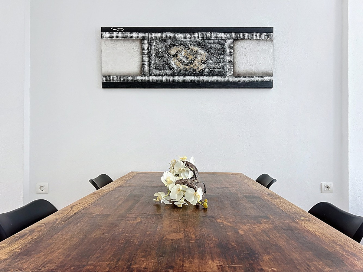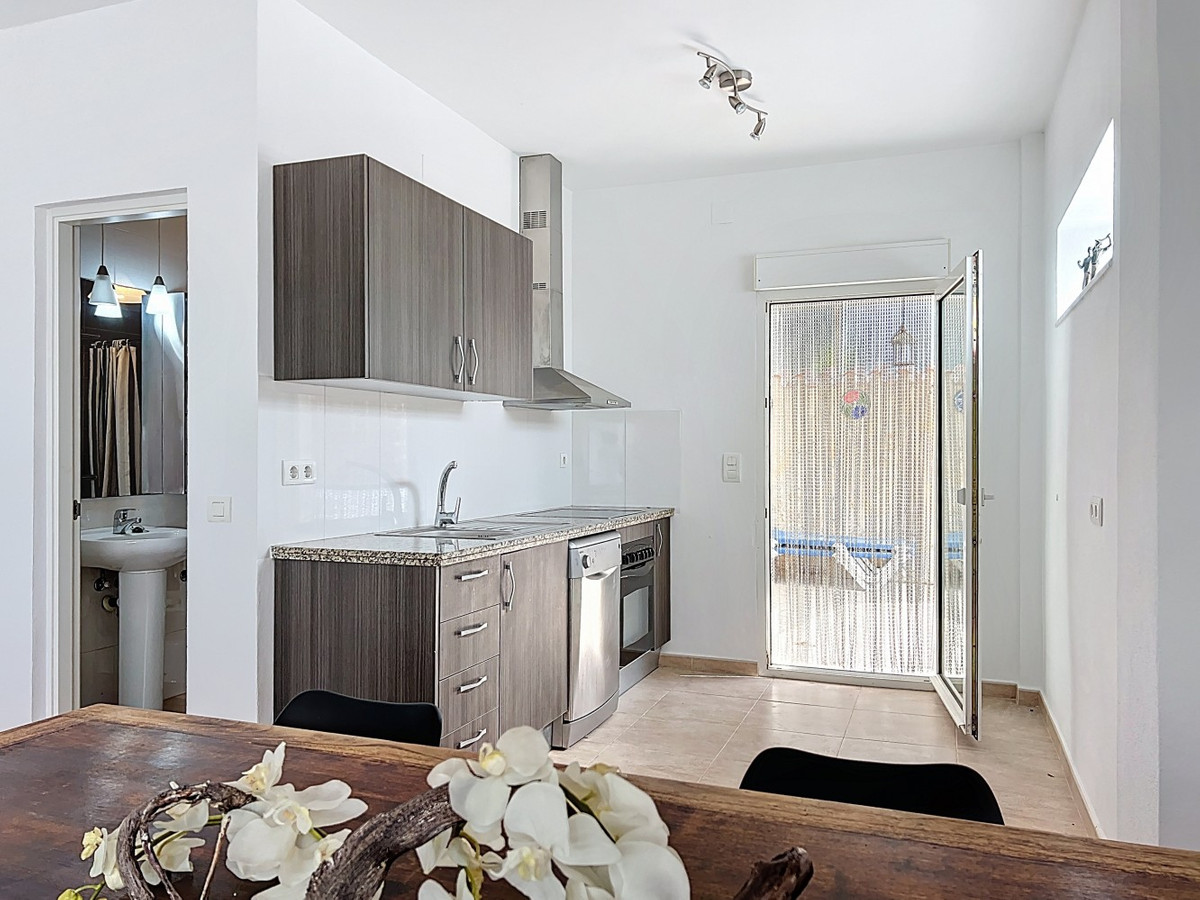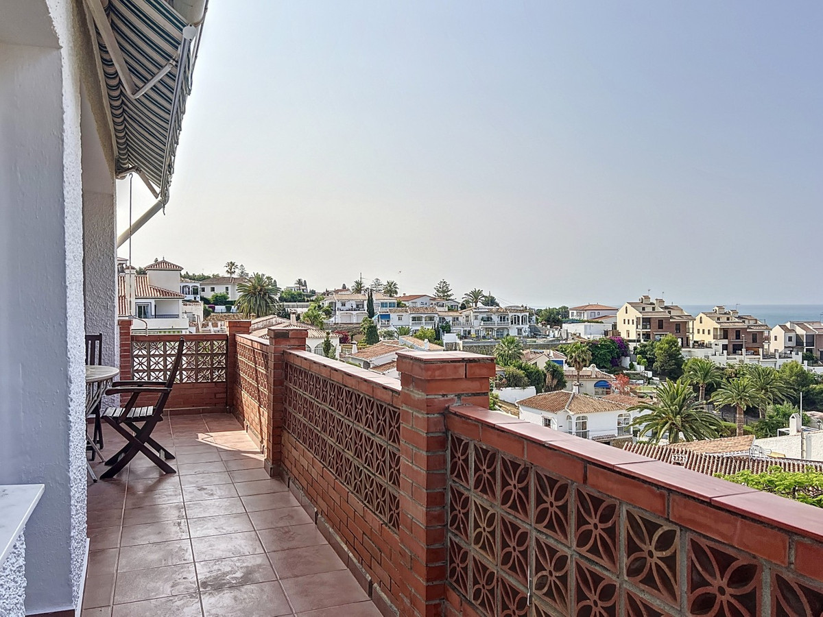 This charming two-story home in Caleta de Vélez offers 169.38 m2 of usable space and 220 m2 built, including terraces, in a privileged location with sea views and a swimming pool. The design blends Mediterranean charm with modern comfort, perfect for enjoying the relaxed lifestyle of the Costa del Sol. The ground floor (87.21 m2) features a bright, open-plan living and dining area with direct access to an outdoor space through large windows and a glass door. This level includes three bedrooms, a full bathroom, and integrated storage solutions, all finished in warm, light tones that enhance the natural light. The upper floor (69.89 m2) continues the harmonious style and includes two more bedrooms, an additional bathroom, a cozy living area with a fireplace, and access to a terrace with open sea viewsideal for relaxing or entertaining. The flooring combines light wood and ceramic, and natural light fills the entire home. Neutral colors and tasteful artistic accents give each room character without overwhelming the space. This versatile property is ideal as a main residence or holiday home, located in one of the most peaceful and sought-after areas of the Málaga coast. We are pleased to be able to present this dream property to you soon, either personally or via virtual viewing. Because this world is unique - just like our Axarquía. In Andalusia. On the Costa del Sol. Here, on the sunny side of life...