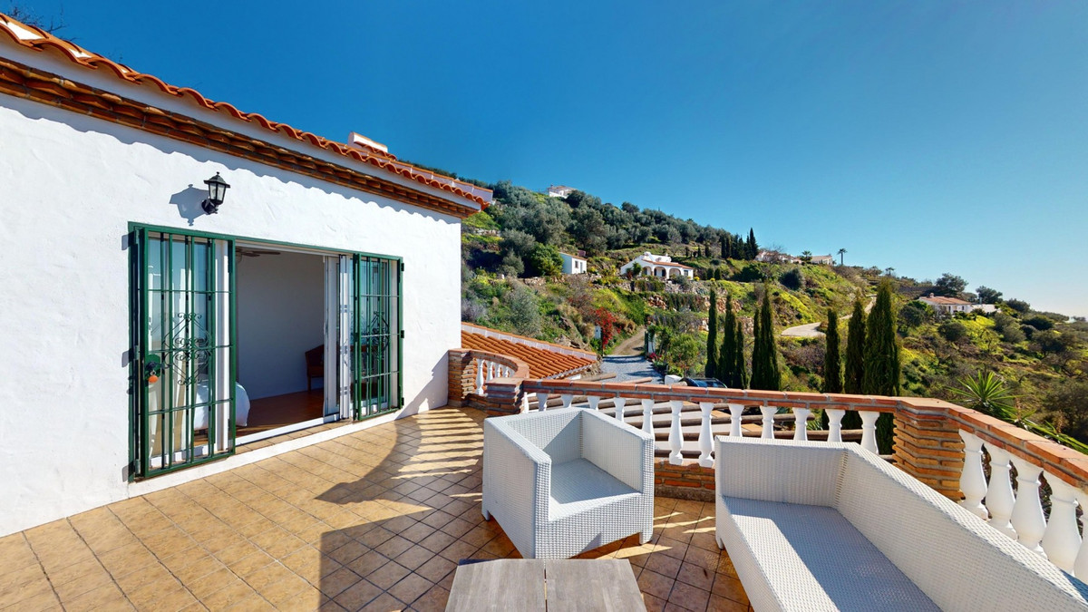 Cette villa récemment rénovée bénéficie d'un emplacement exceptionnel sur le mont Bentomiz à Arenas, à seulement 5 minutes du charmant village d'Arenas et ses maisons blanchies à la chaux, à 20 minutes des plages d'Algarrobo Costa et à 50 minutes de l'aéroport de Málaga. Elle offre un équilibre parfait entre tranquillité et accessibilité. La propriété se distingue par sa luminosité, son design moderne et ses finitions haut de gamme. Elle comprend un vaste séjour/salle à manger ouvert et une cuisine moderne entièrement équipée avec des appareils haut de gamme, dont une plaque de cuisson au gaz, un four, un lave-vaisselle et un réfrigérateur-congélateur intégré. La salle à manger s'ouvre sur une terrasse couverte, idéale pour se détendre ou prendre ses repas en plein air. La villa dispose de 3 chambres et 3 salles de bains, dont deux privatives. Au rez-de-chaussée, une chambre possède une salle de bains privative avec douche, WC et lavabo, ainsi que la climatisation. La deuxième chambre dispose d'une salle de bains séparée avec baignoire, douche, WC et lavabo. La suite parentale, située à l'étage, est climatisée et dispose d'une salle de bains privative avec douche, WC et lavabo, d'un dressing et d'un accès direct à une terrasse sur le toit offrant une vue panoramique imprenable et des couchers de soleil inoubliables. Toutes les chambres et le salon sont équipés de ventilateurs de plafond pour un confort optimal en été. L'espace extérieur comprend une piscine d'eau salée chauffée automatisée de 9,5 mètres sur 5 et un système d'arrosage automatique pour un jardin impeccable. La propriété bénéficie également d'un puits commun et d'une citerne d'une capacité de 12 000 litres. Plusieurs terrasses ombragées agrémentent l'espace extérieur, dont une peut être fermée par un store rétractable. La villa est dotée d'équipements de pointe, notamment 8 panneaux solaires avec un onduleur de 6 kW, le chauffage central, l'eau chaude sanitaire par chaudière à gaz, des fenêtres et portes à double vitrage avec système anti-effraction, un système de sécurité complet avec surveillance 24h/24 et 7j/7 et un système domotique contrôlant l'éclairage, la pompe à chaleur, les panneaux solaires et le niveau d'eau de la citerne. Cette propriété allie harmonieusement confort, style et durabilité dans un cadre exceptionnel. Contactez-nous dès aujourd'hui pour plus d'informations ou pour programmer une visite, en personne ou virtuelle.