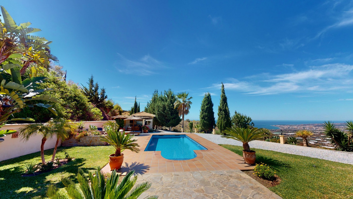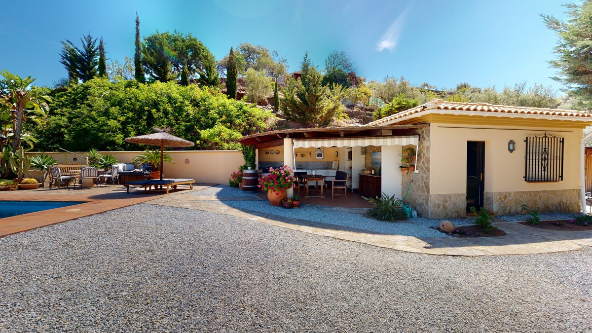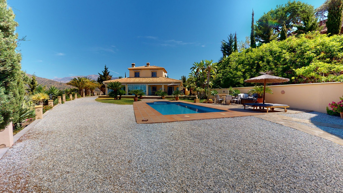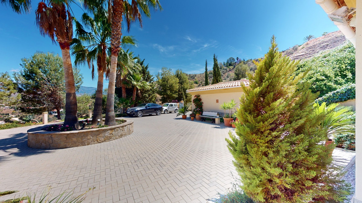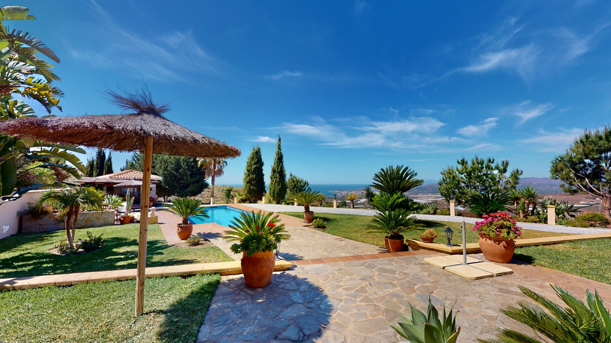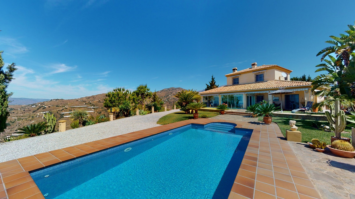 Une vue imprenable, une orientation sud-ouest idéale : la promesse d'un bonheur absolu. Cette villa d'exception, construite avec des matériaux de très haute qualité, offre un cadre idyllique avec un magnifique jardin comprenant spa, sauna et piscine, ainsi qu'une luxueuse cuisine d'été avec coin repas intégré. Située entre Algarrobo et Sayalonga, cette villa unique vous propose tout cela et bien plus encore. Son emplacement privilégié garantit une intimité totale et vous offre une vue romantique sur le coucher du soleil, se reflétant tantôt sur la Méditerranée, tantôt, selon la saison, sur le fabuleux paysage montagneux de Malaga. Un chemin privé asphalté, bordé de pins, mène à l'imposante entrée de la propriété, où un îlot de palmiers se dresse au milieu d'un rondin. Plusieurs places de parking, un garage et un grand abri voiture complètent le rez-de-chaussée. Au premier étage se trouvent le salon avec une cheminée séparée, des toilettes invités, une buanderie, une cuisine moderne donnant sur une véranda spacieuse et parfaitement équipée, ainsi qu'une très belle chambre avec salle de bains privative. À l'étage de la villa se trouve la suite parentale avec une spacieuse salle de bains privative et un dressing. La propriété est équipée du chauffage central, de la climatisation et d'une cheminée. Le terrain est agrémenté d'une variété d'arbres fruitiers, de palmiers, de plantes tropicales et de pins. La plage et la mer, ainsi que le golf et le port de plaisance de Caleta, sont à 15 minutes, et l'aéroport de Malaga à seulement 40 minutes. Nous serions ravis de vous présenter prochainement cette propriété de rêve, en personne ou par visite virtuelle. Car ce monde est unique, à l'image de notre Axarquía. En Andalousie. Sur la Costa del Sol. Ici, sous le soleil…