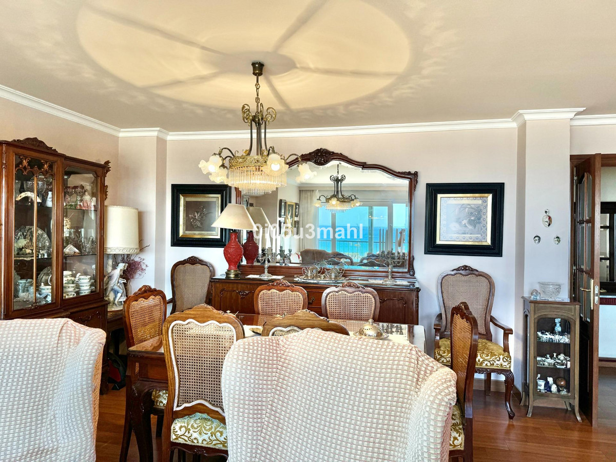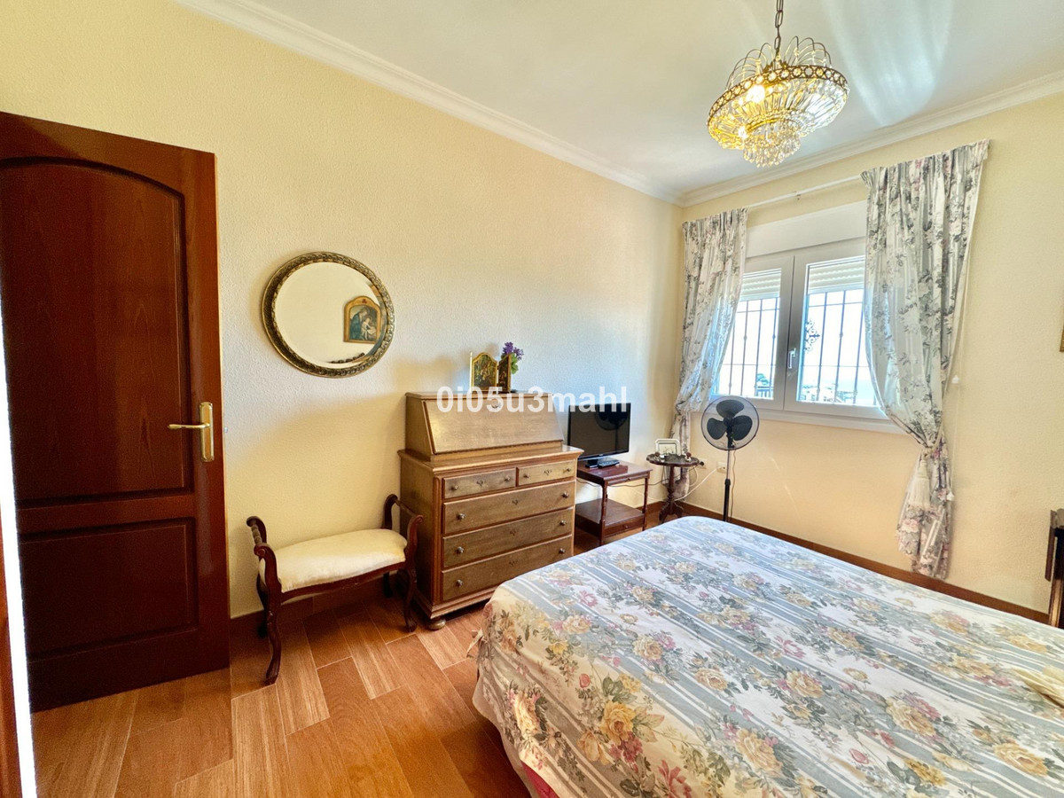 La maison, rénovée en 2006, se déploie sur deux niveaux. Au rez-de-chaussée, on trouve un salon avec cheminée, une grande chambre et une salle de bains. Un escalier confortable mène au premier étage où se situe un vaste et lumineux séjour indépendant donnant accès à une grande terrasse offrant une vue imprenable sur la baie de Malaga. La cuisine indépendante, équipée d'appareils électroménagers et agencée avec soin, se distingue par sa fonctionnalité et son espace. Elle offre un environnement polyvalent et bien organisé, avec un accès aisé aux espaces extérieurs pour profiter de repas en plein air. L'étage comprend également quatre chambres spacieuses, dont trois avec vue sur mer, et deux salles de bains, dont une privative.