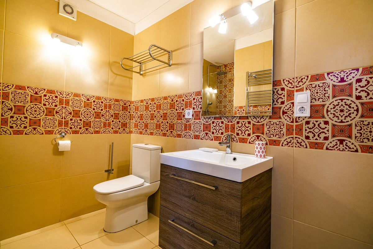 L'hébergement pour les invités comprend quatre chambres doubles spacieuses, dont une grande chambre familiale, toutes dotées d'une salle de bains privative et trois d'entre elles donnant accès à une terrasse. L'espace privé réservé aux propriétaires comprend une chambre double avec salle de bains privative, deux balcons-terrasses et une buanderie.