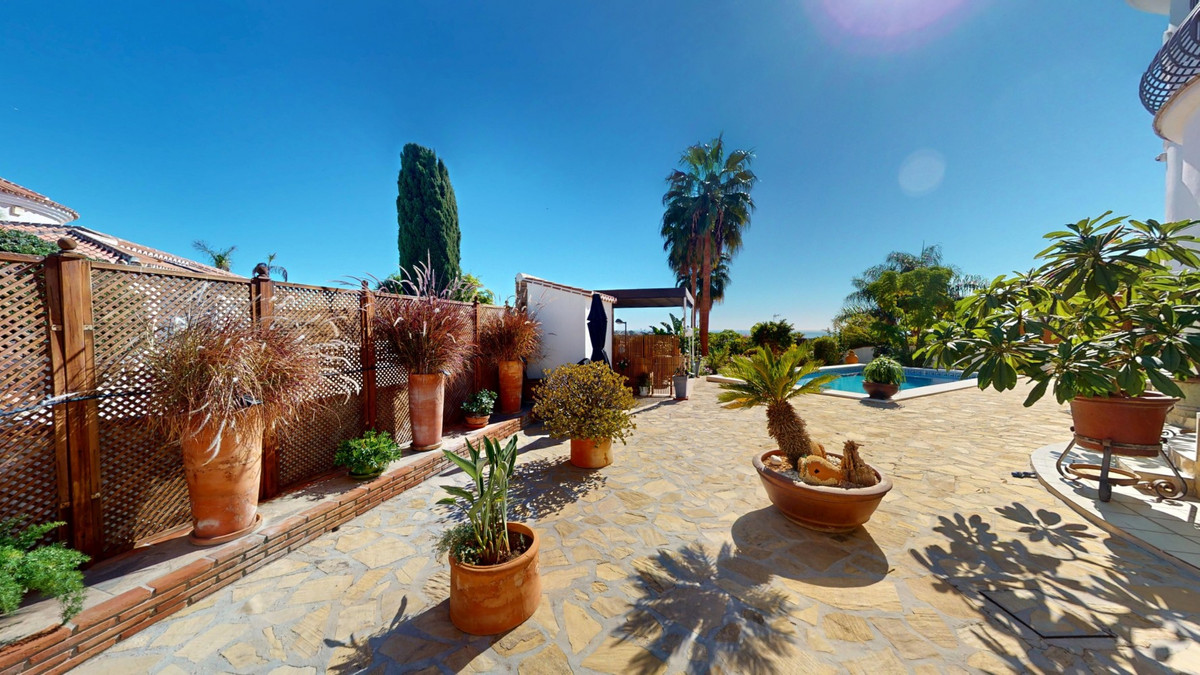 Découvrez un monde où luxe et tranquillité se conjuguent dans cette magnifique villa individuelle, située dans le quartier résidentiel paisible d'El Capitán, près de Torre del Mar et d'Almayate, sur la côte est de Malaga. Son emplacement est idéal pour ceux qui recherchent calme et intimité tout en restant proches des commodités. En quelques minutes seulement, vous rejoindrez les plages d'Almayate et de Torre del Mar, où vous trouverez de charmants restaurants, des boutiques et des promenades animées en bord de mer. La ville de Malaga et l'aéroport sont à seulement 35 minutes en voiture. Nichée sur un terrain privé de 811 m², la villa offre 310 m² d'espace de vie élégant, entouré d'un jardin facile d'entretien, clos d'un mur pour une intimité et une sécurité optimales. Un portail privé permet l'accès aux véhicules, et l'espace extérieur comprend une piscine étincelante, une vaste terrasse couverte pour se détendre à l'ombre, et un charmant coin salon sous une coupole, parfait pour savourer un verre ou un bon livre. À l'intérieur, la maison impressionne par ses espaces généreux et sa luminosité naturelle. Le hall d'entrée mène à un garage double avec espace de rangement supplémentaire. Au rez-de-chaussée, vous trouverez un vaste séjour avec un coin salon attenant et de larges baies vitrées s'ouvrant sur la piscine et le jardin, ainsi qu'une salle de bains et une chambre idéale pour les invités. À l'étage, le cœur de la maison se dévoile : un espace lumineux et décloisonné réunissant la cuisine, la salle à manger et le séjour. La lumière naturelle inonde la pièce à travers de grandes fenêtres, créant une atmosphère chaleureuse et accueillante, propice à la détente en famille comme aux réceptions élégantes. La cuisine entièrement équipée dispose d'élégants placards en bois, d'un plan de travail en granit et offre une vue sur le jardin. Depuis le séjour, vous accédez à un grand balcon offrant une vue imprenable sur la mer Méditerranée. Cet étage comprend également deux chambres, une salle de bains spacieuse et des toilettes séparées. Une terrasse donnant sur la rue est accessible depuis ce niveau ou par un escalier extérieur, offrant un espace extérieur supplémentaire pour se réunir ou profiter de soirées paisibles. Au dernier étage, une terrasse sur le toit couronne la villa, offrant une vue panoramique sur la mer, les montagnes et la campagne environnante – un lieu idéal pour admirer les couchers de soleil et la sérénité des soirées andalouses. Cette villa allie élégance, confort et charme méditerranéen : un véritable havre de paix où chaque jour est une invitation au voyage. Nous serions ravis de vous présenter prochainement cette propriété de rêve, que ce soit en personne ou par le biais d’une visite virtuelle. Car ce monde est unique, à l’image de notre Axarquía. En Andalousie. Sur la Costa del Sol. Ici, la vie est douce et ensoleillée.