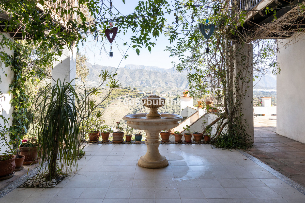 Cette belle et spacieuse propriété est située dans un cadre tranquille, idéal pour ceux qui recherchent un environnement paisible et relaxant, entre les villages de Torrox et Frigiliana, à seulement 25 minutes de la plage. En entrant dans la propriété, une allée presque entièrement pavée mène à une vaste aire d'entrée/parking pouvant accueillir plusieurs véhicules. La maison principale se compose de deux maisons séparées reliées par un couloir intérieur. Elle comprend également un studio indépendant. Au total, la villa compte 7 chambres, ce qui la rend idéale pour accueillir un grand nombre de personnes : famille nombreuse, groupe d’amis ou projet d’investissement, comme une maison d’hôtes. Cette très belle propriété dispose également de plusieurs terrasses, d'une piscine privée et de jardins, autant d'endroits parfaits pour se détendre et profiter des montagnes environnantes et des vues imprenables sur le village de Frigiliana. De plus, l'un de ses principaux atouts est son studio de yoga, idéal pour tous ceux qui pratiquent le yoga ou d'autres formes d'exercice. La propriété comprend également une cave à vin.