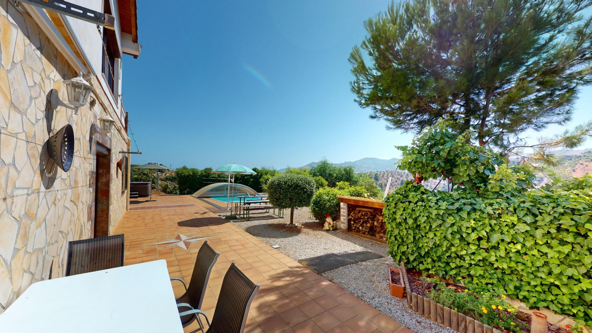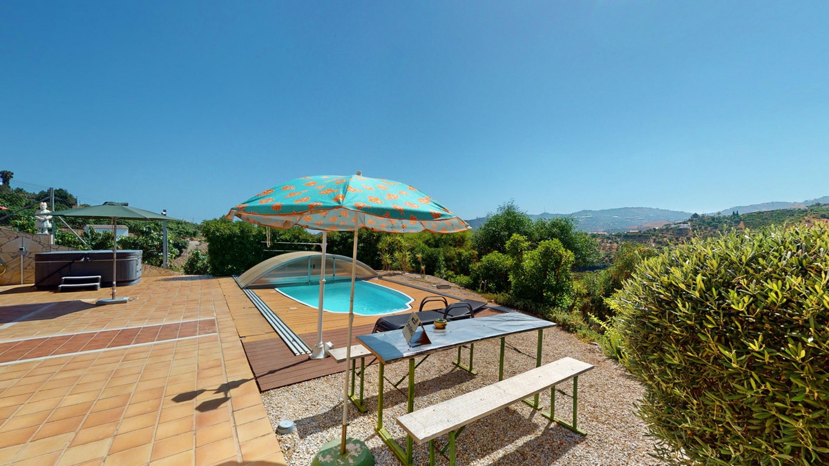Magnifique villa à vendre au pied de Frigiliana. Cette impressionnante villa, nichée au pied de Frigiliana, offre deux logements indépendants sur deux niveaux, chacun avec son propre accès et son intimité. Le logement supérieur, d'une superficie de 150 m², comprend un vaste espace de vie ouvert avec cuisine attenante et rangements pratiques. La terrasse offre une vue imprenable sur les montagnes environnantes. Le salon se distingue par sa cheminée pivotante, qui apporte chaleur et ambiance. La terrasse abrite également une salle de fitness. Autre atout : la luxueuse baignoire du salon, idéale pour se détendre. Ce logement comprend trois chambres spacieuses, deux salles de bains (dont une attenante à la chambre principale) et des toilettes invités. Le logement inférieur, d'une superficie totale de 80 m², comprend un espace de vie convivial avec cuisine, une chambre et une salle de bains. L'ensemble de la maison est équipé d'un chauffage au sol, de la climatisation et d'un système d'aspiration centralisée. Construite selon les normes allemandes les plus exigeantes, elle bénéficie d'une excellente isolation et de matériaux de haute qualité. Un système de panneaux solaires sur le toit assure le chauffage et l'eau chaude sanitaire. L'espace extérieur de cette villa d'exception est tout simplement parfait. Vous y trouverez une piscine d'eau salée chauffée avec une couverture facile à manipuler, un jacuzzi relaxant et une cuisine d'été entièrement équipée avec sauna. De plus, un atelier, une caravane et une petite dépendance se situent au pied de la propriété. Le terrain de 6 000 m² est agrémenté de nombreux arbres fruitiers, une véritable invitation à la flânerie pour les amoureux de la nature. La villa bénéficie d'une excellente desserte et est idéale pour ceux qui apprécient une vie paisible en pleine nature. Vivez une expérience luxueuse dans un cadre à couper le souffle : votre nouvelle demeure au pied de Frigiliana vous attend ! Nous serons ravis de vous présenter prochainement cette propriété de rêve, en personne ou par visite virtuelle. Car ce monde est unique, à l'image de notre Axarquía. En Andalousie. Sur la Costa del Sol. Ici, sous le soleil…