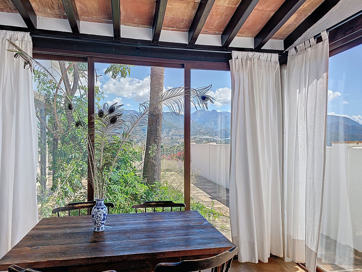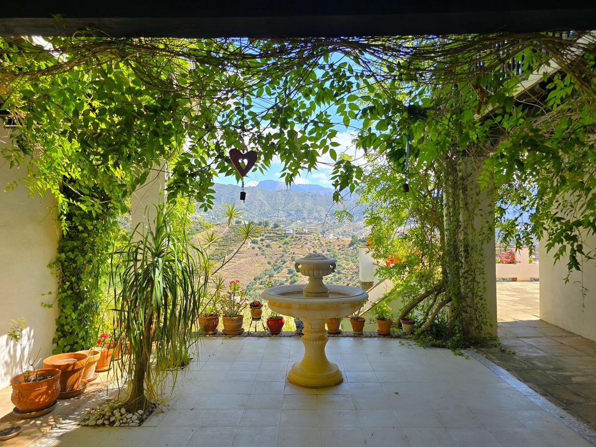 Laissez-vous charmer par cette villa espagnole typique, où architecture traditionnelle et confort moderne se conjuguent pour offrir une expérience de vie unique. La maison principale, indépendante, se compose de deux ailes harmonieusement reliées, entourées d'un jardin luxuriant planté d'oliviers et de figuiers, et offre une vue panoramique imprenable sur les villages blanchis à la chaux de Frigiliana et Nerja, avec les majestueuses montagnes d'Andalousie en toile de fond.