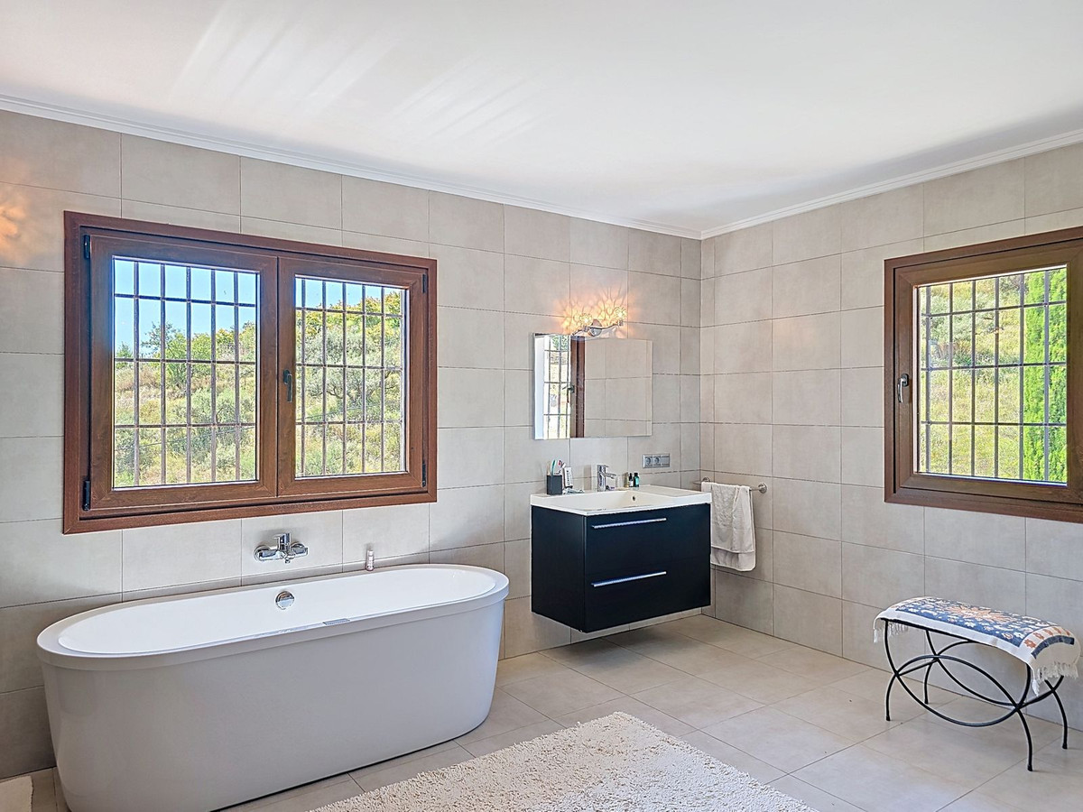 L'espace extérieur est un véritable paradis, avec plusieurs terrasses et une piscine privée rafraîchissante. Un atout unique est la cave à vin privée (bodega), située dans un espace souterrain naturel, où vous pourrez conserver vos vins préférés à température idéale. La villa allie durabilité et confort grâce à des panneaux solaires et une immense réserve d'eau de 160 000 litres.