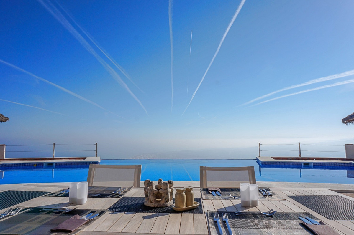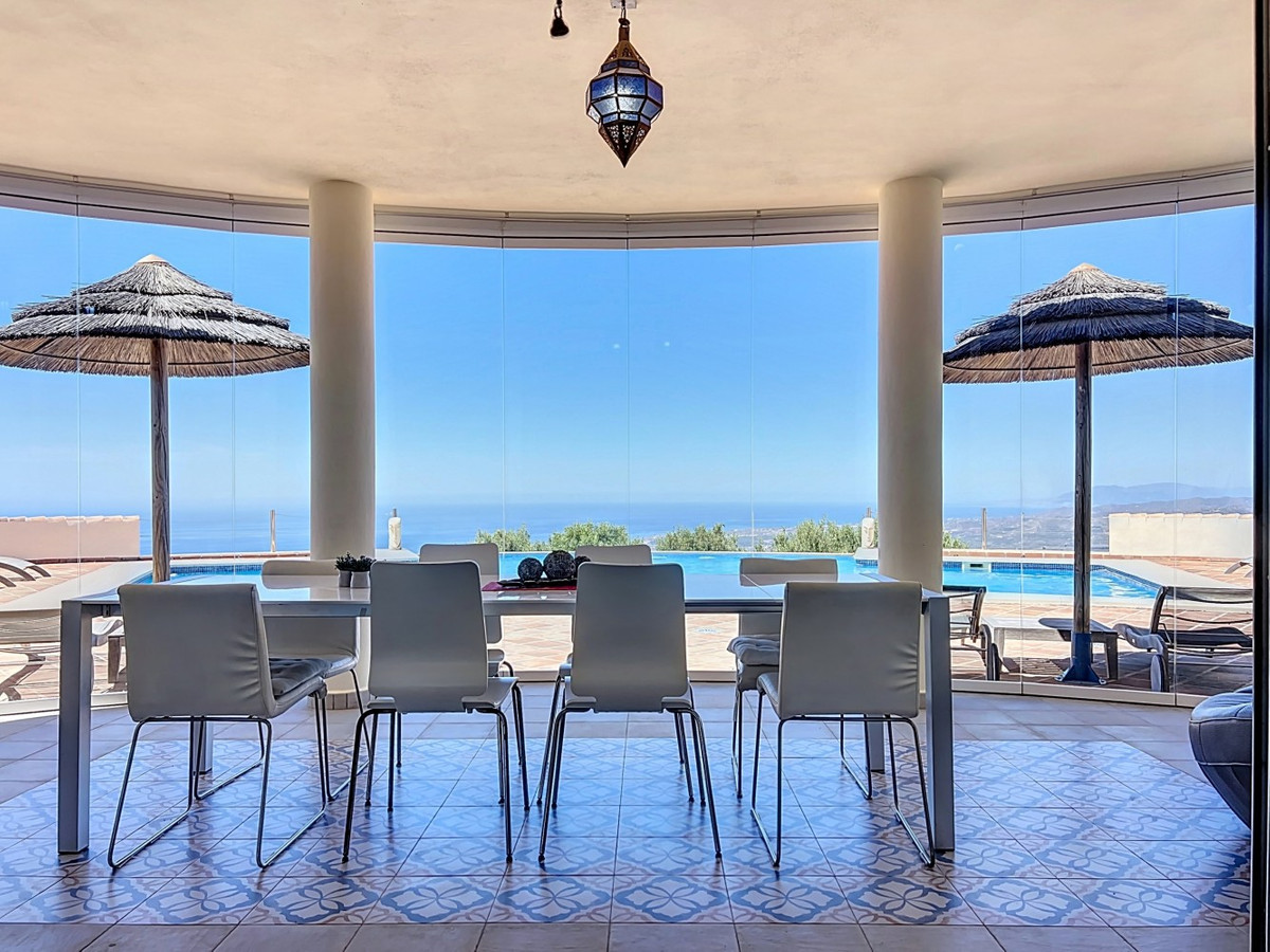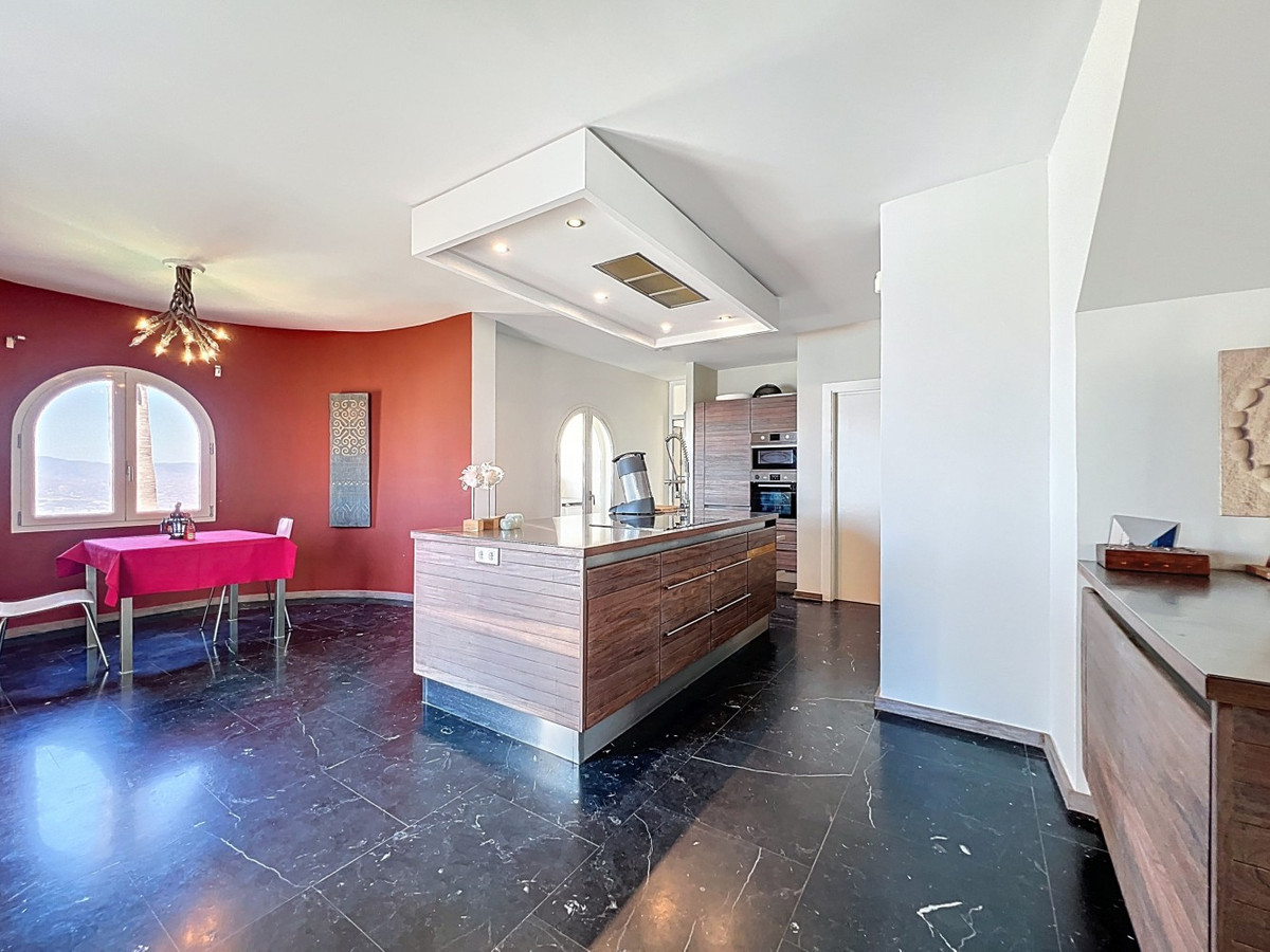 Imaginez-vous vous réveiller chaque matin bercé par la douce caresse de la Méditerranée dans cette villa d'exception. Véritable chef-d'œuvre architectural, cette demeure offre un style de vie incomparable, alliant harmonieusement des intérieurs spacieux à des panoramas à couper le souffle qui s'étendent jusqu'à l'horizon. Le séjour vous accueille avec une abondance de lumière naturelle grâce à ses baies vitrées coulissantes qui encadrent à la perfection la vue imprenable sur la mer d'azur. L'agencement ouvert crée une circulation fluide, idéale pour des réunions intimes comme pour de grandes réceptions, estompant la frontière entre luxe intérieur et paradis extérieur. Pour les passionnés de cuisine, la cuisine gastronomique est un rêve devenu réalité, équipée d'appareils ultramodernes et offrant un espace généreux pour concocter des repas mémorables. Dînez en plein air sur la vaste terrasse, où la douce brise marine sublime chaque instant. La somptueuse suite parentale, d'une superficie de 32,5 m², offre un havre de paix avec une vue panoramique sur l'océan. Commencez votre journée dans la salle de bains digne d'un spa, un véritable symbole de luxe et de confort. Le balcon privé est idéal pour savourer un café le matin ou un cocktail en fin de journée en admirant le coucher du soleil sur la mer. À l'extérieur, la terrasse carrelée en terre cuite est un véritable havre de paix. Profitez du soleil généreux d'Espagne, organisez des fêtes inoubliables ou laissez-vous simplement envoûter par la vue imprenable sur le littoral. Au-delà de sa beauté, cette villa offre une opportunité rare pour ceux qui souhaitent se lancer dans une activité commerciale, comme une maison d'hôtes. Avec ses 4 chambres à louer, chacune dotée de sa propre salle de bain et d'une entrée indépendante, la propriété a déjà fonctionné avec succès comme maison d'hôtes, ne recevant que des avis élogieux. En plus des chambres à louer, une chambre privée avec salle de bain se trouve au premier étage, ainsi qu'une autre chambre avec salle de bain au sous-sol. La cuisine intérieure entièrement équipée et la magnifique cuisine extérieure offrent tout le confort nécessaire à la gestion d'une activité prospère, tandis que le grand garage souterrain offre un espace de rangement généreux. Située à Algarrobo, à Malaga, cette propriété garantit un accès facile aux commodités de renommée mondiale, aux plages immaculées et à une riche vie culturelle, tout en offrant un cadre idéal pour savourer pleinement l'art de vivre méditerranéen. Que vous recherchiez une luxueuse résidence familiale, une opportunité d'investissement ou simplement un coin de paradis, cette villa répond à toutes vos attentes. Bien plus qu'une simple maison, c'est un véritable art de vivre. Vivez l'apogée de la vie méditerranéenne dans cette villa extraordinaire : votre rêve de posséder un coin de paradis est désormais à portée de main. Ne manquez pas cette occasion unique d'accéder à un niveau de luxe, de beauté et d'opportunités inédit. Nous serons ravis de vous présenter prochainement cette propriété d'exception, en personne ou virtuellement. Car ce monde est unique, à l'image de notre Axarquía. En Andalousie. Sur la Costa del Sol. Ici, sous le soleil de la vie…