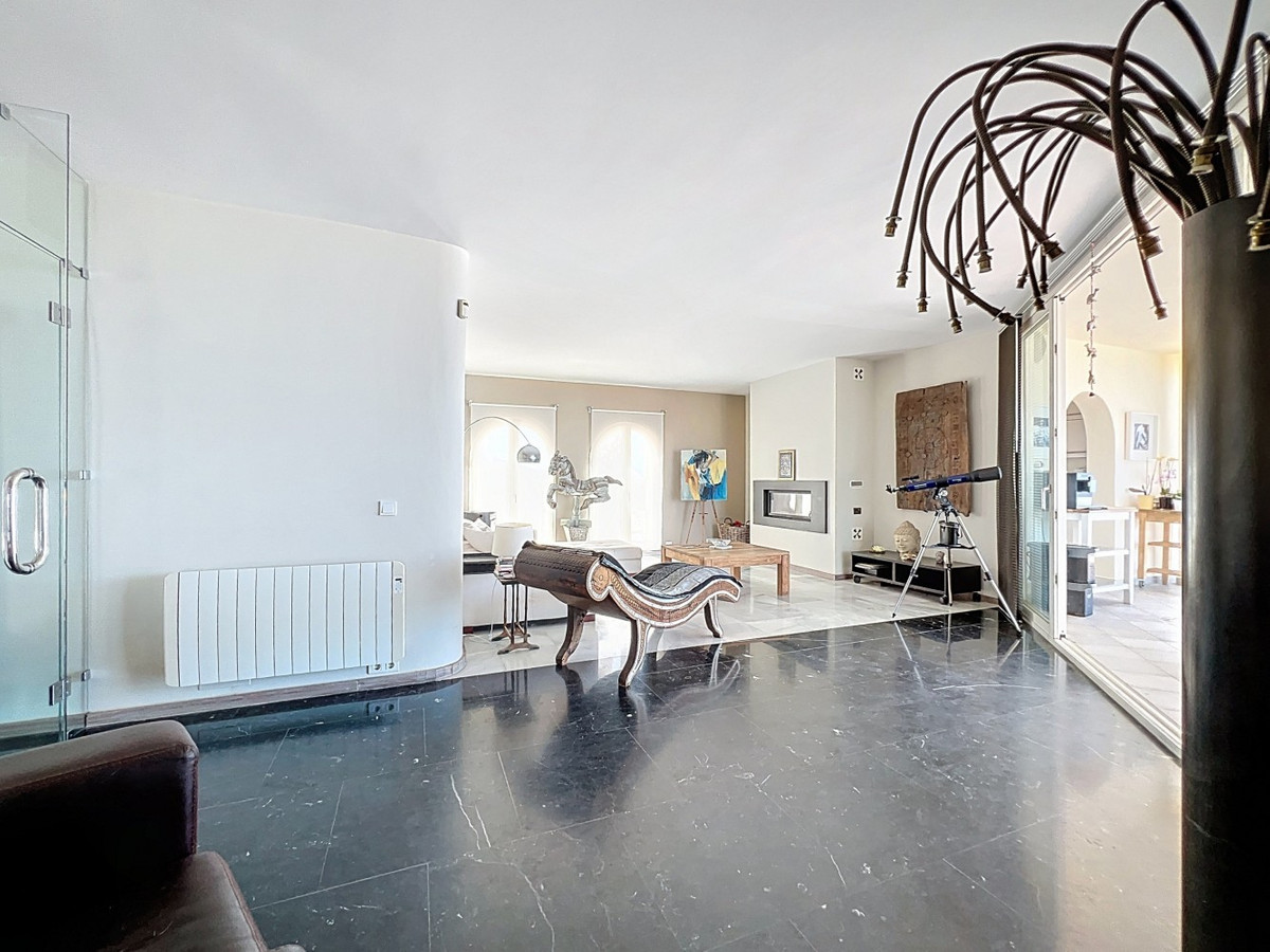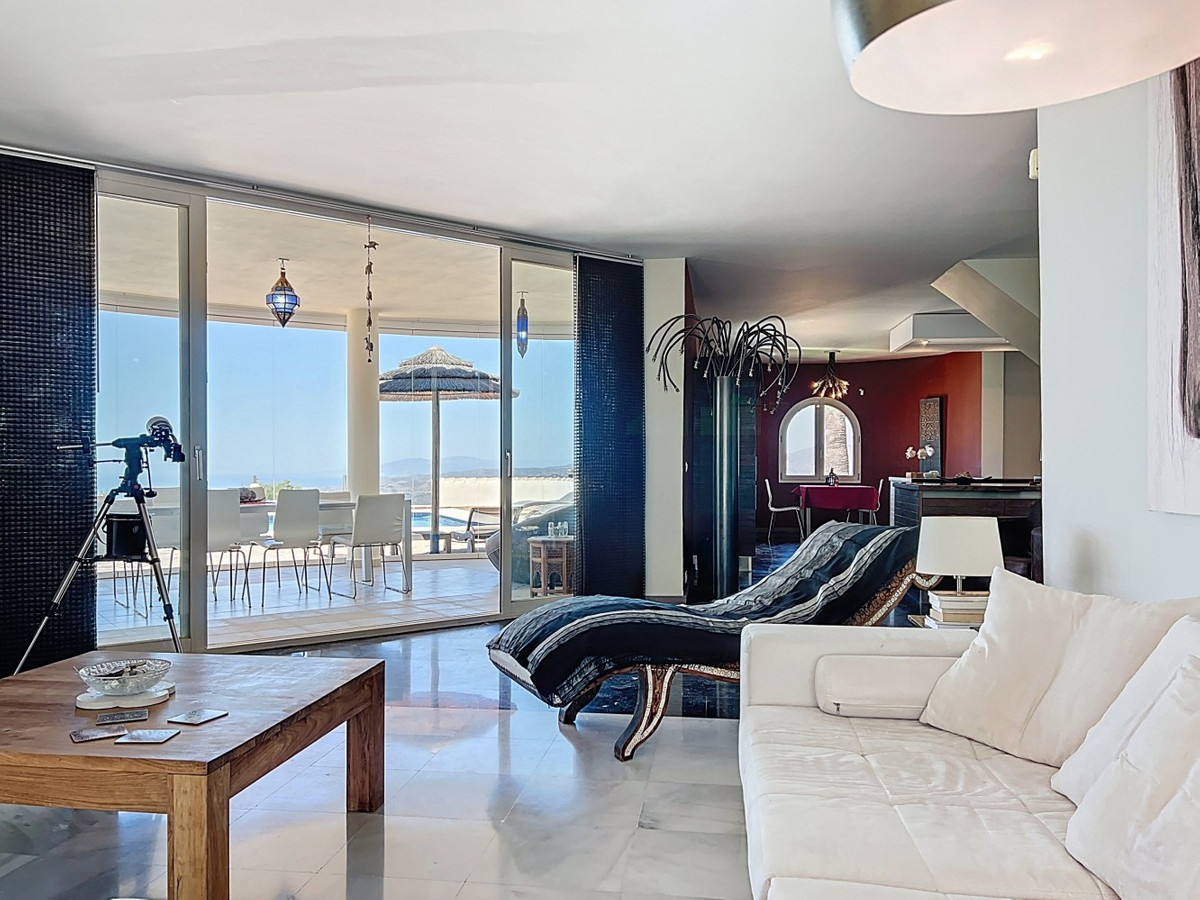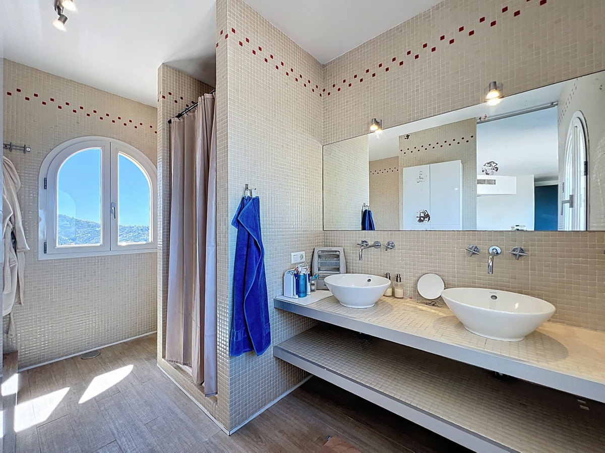 Imaginez-vous vous réveiller chaque matin bercé par la douce caresse de la Méditerranée dans cette villa d'exception. Véritable chef-d'œuvre architectural, cette demeure offre un style de vie incomparable, alliant harmonieusement des intérieurs spacieux à des panoramas à couper le souffle qui s'étendent jusqu'à l'horizon. Le séjour vous accueille avec une abondance de lumière naturelle grâce à ses baies vitrées coulissantes qui encadrent à la perfection la vue imprenable sur la mer d'azur. L'agencement ouvert crée une circulation fluide, idéale pour des réunions intimes comme pour de grandes réceptions, estompant la frontière entre luxe intérieur et paradis extérieur. Pour les passionnés de cuisine, la cuisine gastronomique est un rêve devenu réalité, équipée d'appareils ultramodernes et offrant un espace généreux pour concocter des repas mémorables. Dînez en plein air sur la vaste terrasse, où la douce brise marine sublime chaque instant. La somptueuse suite parentale, d'une superficie de 32,5 m², offre un havre de paix avec une vue panoramique sur l'océan. Commencez votre journée dans la salle de bains digne d'un spa, un véritable symbole de luxe et de confort. Le balcon privé est idéal pour savourer un café le matin ou un cocktail en fin de journée en admirant le coucher du soleil sur la mer. À l'extérieur, la terrasse carrelée en terre cuite est un véritable havre de paix. Profitez du soleil généreux d'Espagne, organisez des fêtes inoubliables ou laissez-vous simplement envoûter par la vue imprenable sur le littoral. Au-delà de sa beauté, cette villa offre une opportunité rare pour ceux qui souhaitent se lancer dans une activité commerciale, comme une maison d'hôtes. Avec ses 4 chambres à louer, chacune dotée de sa propre salle de bain et d'une entrée indépendante, la propriété a déjà fonctionné avec succès comme maison d'hôtes, ne recevant que des avis élogieux. En plus des chambres à louer, une chambre privée avec salle de bain se trouve au premier étage, ainsi qu'une autre chambre avec salle de bain au sous-sol. La cuisine intérieure entièrement équipée et la magnifique cuisine extérieure offrent tout le confort nécessaire à la gestion d'une activité prospère, tandis que le grand garage souterrain offre un espace de rangement généreux. Située à Algarrobo, à Malaga, cette propriété garantit un accès facile aux commodités de renommée mondiale, aux plages immaculées et à une riche vie culturelle, tout en offrant un cadre idéal pour savourer pleinement l'art de vivre méditerranéen. Que vous recherchiez une luxueuse résidence familiale, une opportunité d'investissement ou simplement un coin de paradis, cette villa répond à toutes vos attentes. Bien plus qu'une simple maison, c'est un véritable art de vivre. Vivez l'apogée de la vie méditerranéenne dans cette villa extraordinaire : votre rêve de posséder un coin de paradis est désormais à portée de main. Ne manquez pas cette occasion unique d'accéder à un niveau de luxe, de beauté et d'opportunités inédit. Nous serons ravis de vous présenter prochainement cette propriété d'exception, en personne ou virtuellement. Car ce monde est unique, à l'image de notre Axarquía. En Andalousie. Sur la Costa del Sol. Ici, sous le soleil de la vie…