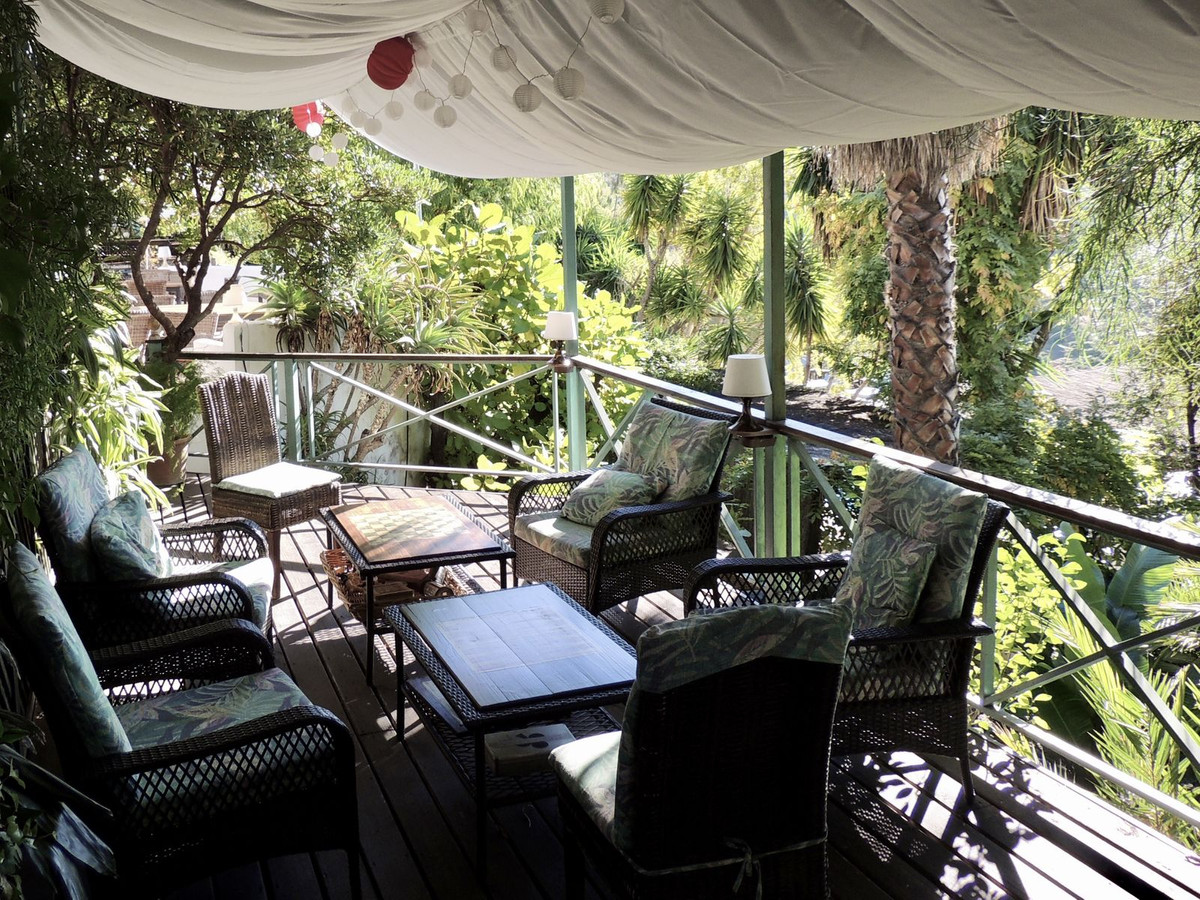 Sur ce terrain magnifiquement paysagé se trouve un grand studio actuellement utilisé pour des activités de groupe telles que le yoga et la peinture.