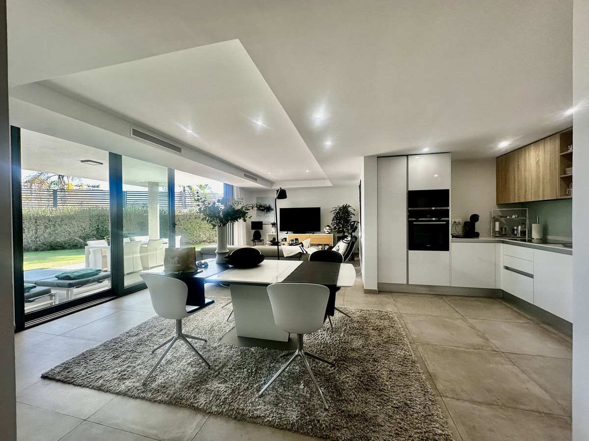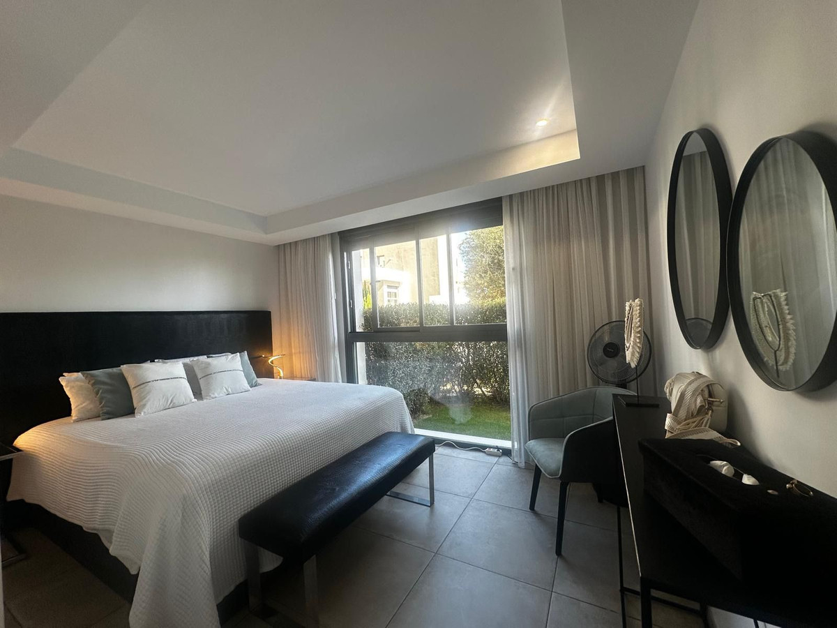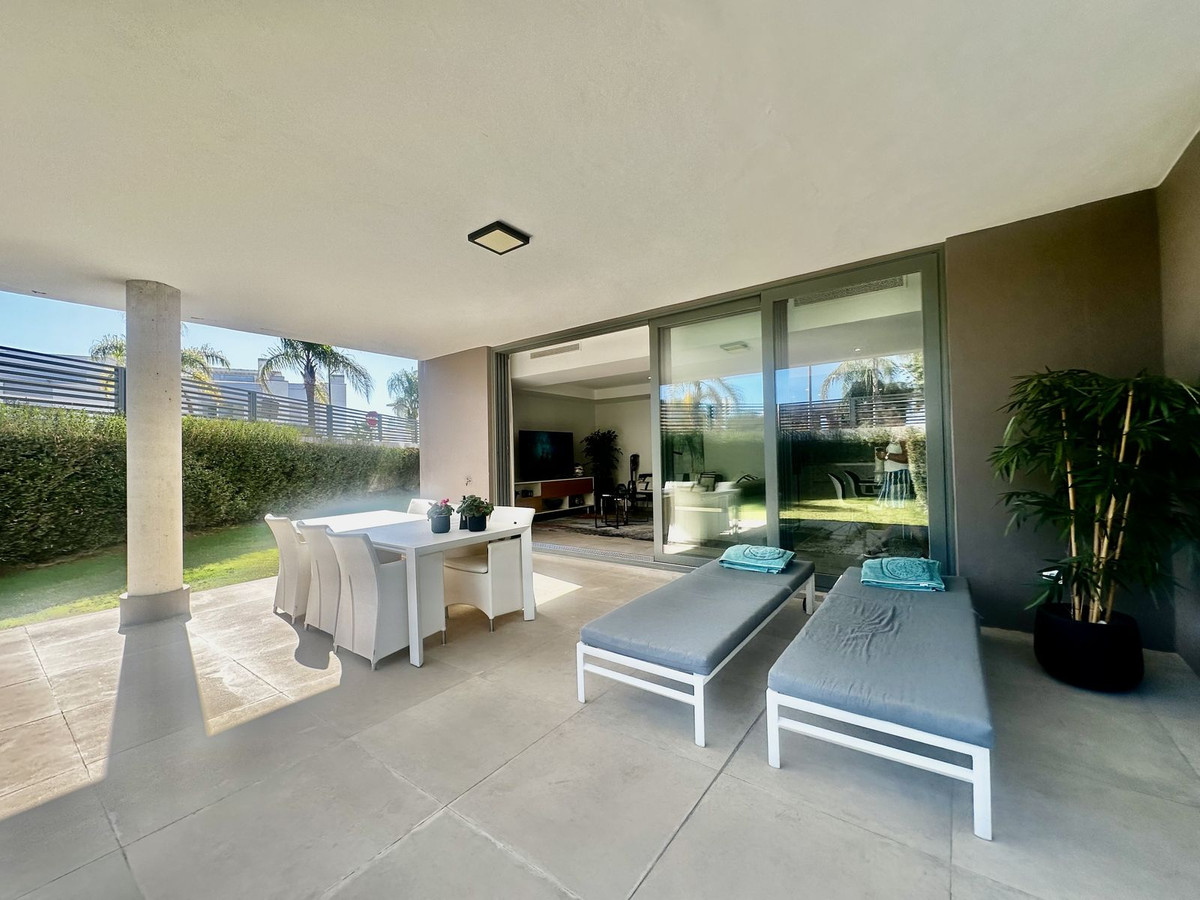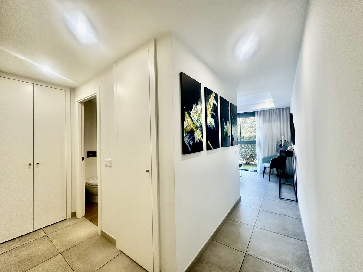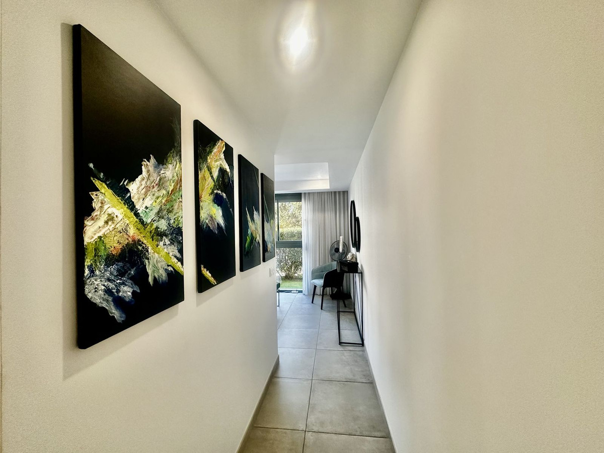 Appartement moderne et élégant au rez-de-chaussée avec 2 chambres et 2 salles de bains, situé dans le quartier recherché de Cancelada (Estepona), à seulement 15 minutes de Marbella, 10 minutes de Puerto Banús et 5 minutes de l'hôtel exclusif Anantara Villa Padierna et des terrains de golf Flamingos.