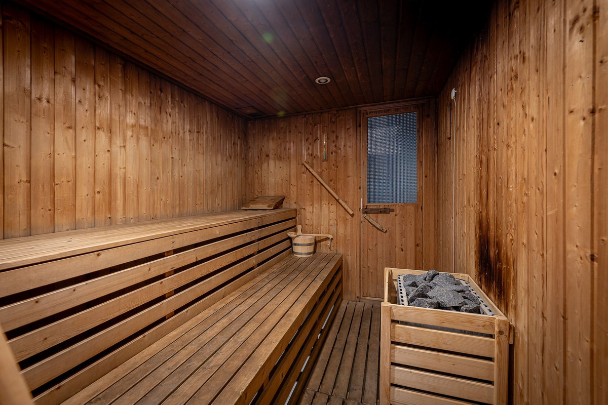 Large outdoor pool, gym, sauna and yoga classes available