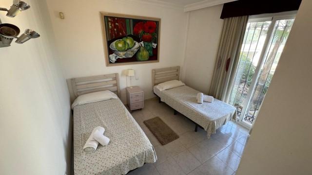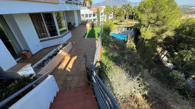 Rez de chaussée, partiellement meublé, cuisine équipée, Parking: Souterrain, piscine communautaire, Jardin: Communauté, Orientation: Sud