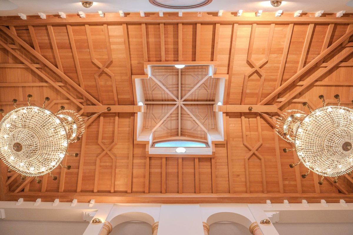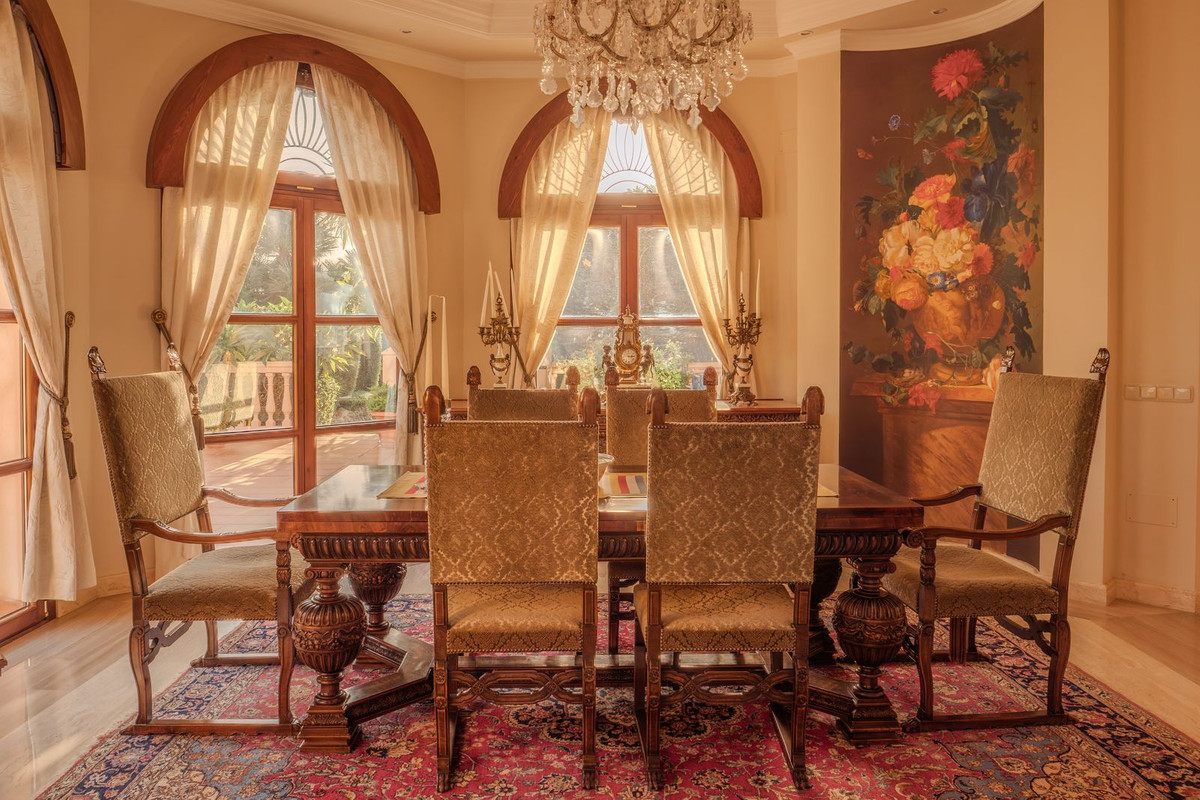 Gracefully positioned in Aloha, Nueva Andalucía- one of Marbella’s most coveted addresses, this west-facing landmark residence sits on a 3,400 m² plot and captivates with its grand, refined appearance. Its 1,727 m² of interiors showcase soaring double-height ceilings, intricate woodwork, and hand-finished marble, creating spaces of enduring beauty and sophisticated character.