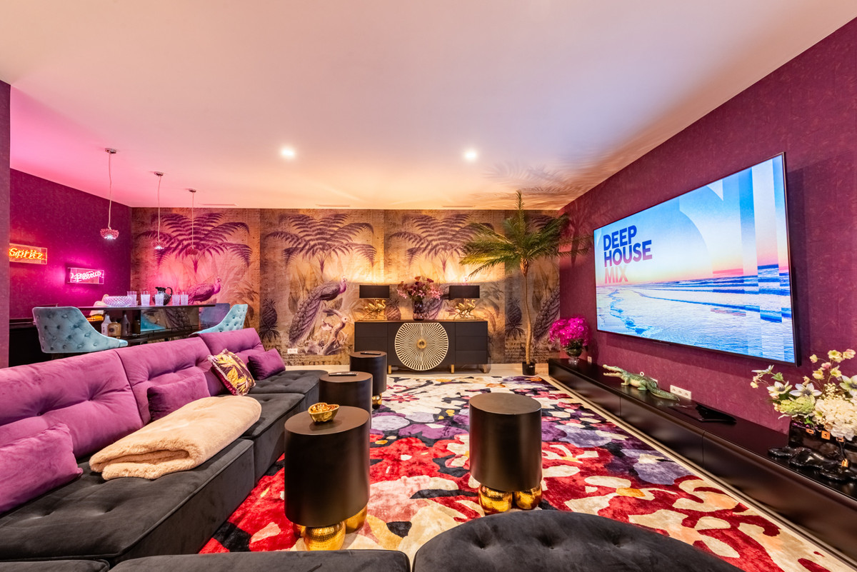 Cette superbe propriété comprend 5 salles de bains privatives, ainsi que 2 toilettes invités élégantes pour plus de confort. À l'intérieur, vous découvrirez de vastes espaces de vie, dont un salon, un bar privé raffiné, une salle de sport entièrement équipée et des buanderies fonctionnelles, le tout aménagé avec un mobilier haut de gamme et une décoration design.