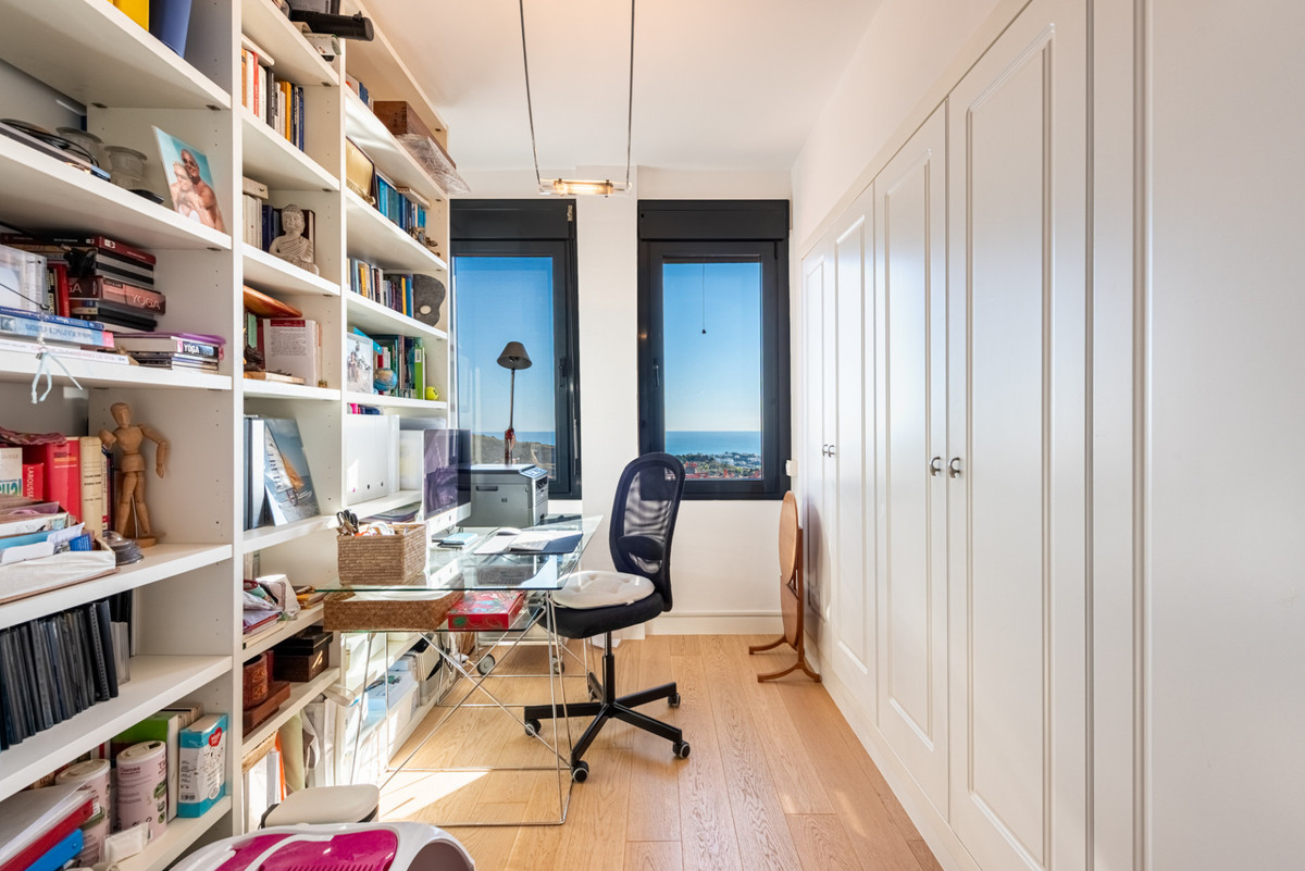 The bedroom area that contains the master bedroom and a second bedroom also has amazing sea views from both bedrooms with direct access to the terrace. One bedroom is “en-suit” with a bathroom with both a bathtub and a shower. The second bathroom in the hallway is having a shower.