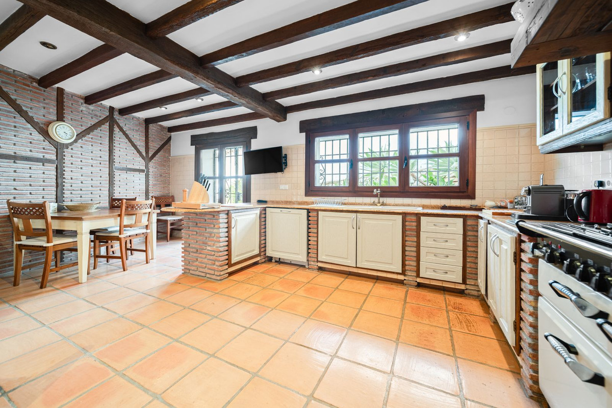 La villa est en excellent état et séduit par son caractère andalou authentique : de magnifiques poutres en bois, des détails en brique et en pierre, et une élégante finition rustique qui crée une atmosphère chaleureuse et accueillante.