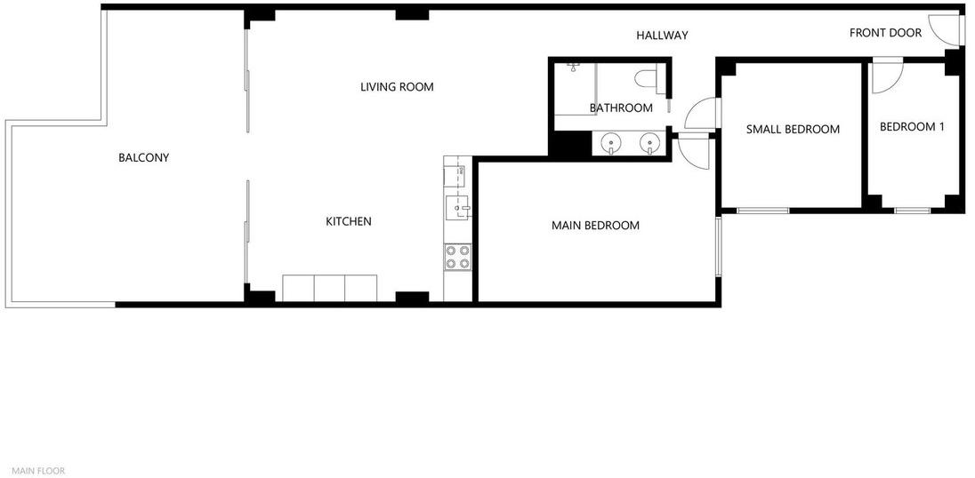 The apartment officially features two bedrooms and one bathroom, complemented by an additional room currently furnished with a bunk bed and used as an extra bedroom. This extra space makes the property flexible for families, guests, or rental purposes.