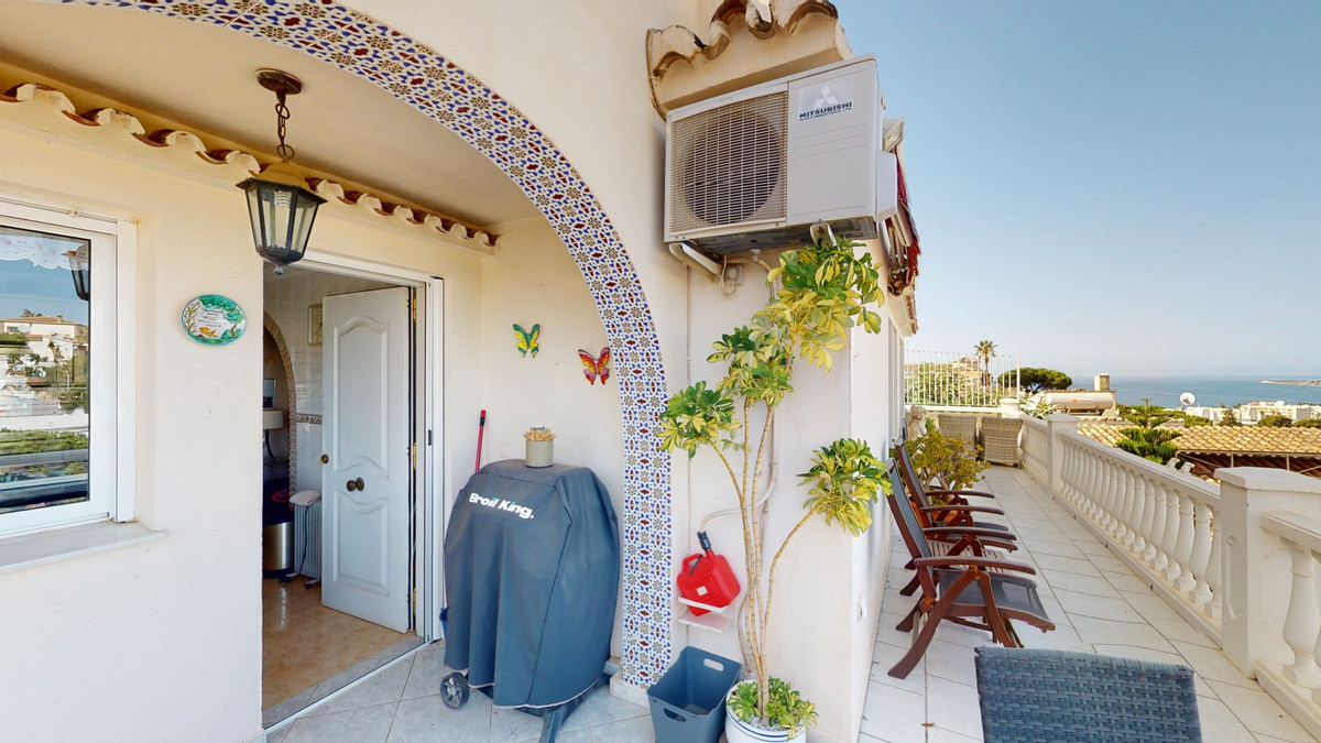 Nous sommes ravis de vous présenter cette superbe villa située à Caleta de Vélez, l'une des stations balnéaires les plus prisées de la Costa del Sol. À quelques minutes seulement de la plage, des restaurants, des bars et des commerces, cette propriété bénéficie d'un emplacement exceptionnel. La villa, sur deux niveaux, est divisée en deux appartements, chacun avec son entrée indépendante. Un escalier extérieur relie les deux niveaux. Elle est idéale pour la location saisonnière. L'appartement du niveau supérieur dispose d'une grande terrasse en L offrant une vue imprenable sur la mer et les montagnes. On y accède par une cuisine spacieuse, elle-même ouverte sur la salle à manger et le salon baigné de lumière. On y trouve également deux chambres et une salle de bain avec douche. La piscine se situe au niveau inférieur de la villa. Vous pourrez vous y rafraîchir lors des chaudes journées d'été. Devant le second appartement se trouve une petite terrasse où vous pourrez savourer votre café du matin. Grâce à sa large baie vitrée, vous profiterez d'une vue magnifique depuis tout l'espace de vie. Celui-ci se compose d'une cuisine, d'une salle de bain et d'un séjour ouvert avec un lit double. Une petite pièce, actuellement aménagée en chambre, complète cet espace. Nous sommes ravis de pouvoir vous présenter prochainement cette propriété de rêve, en personne ou par visite virtuelle. Car ce lieu est unique, à l'image de notre Axarquía. En Andalousie. Sur la Costa del Sol. Ici, sous le soleil…