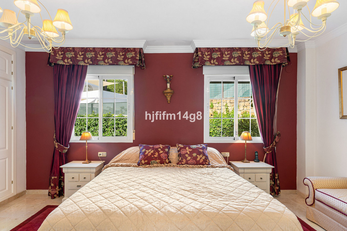 The townhouse is distributed over several levels and offers generous interior and exterior spaces. On the entrance level, you will find a bright and inviting combined living and dining room featuring an open fireplace and direct access to a south-facing terrace, perfect for enjoying Marbella’s year-round sunshine. The fully fitted kitchen is practical and well laid out, complemented by an entrance hall, storage room and a guest toilet on this level.