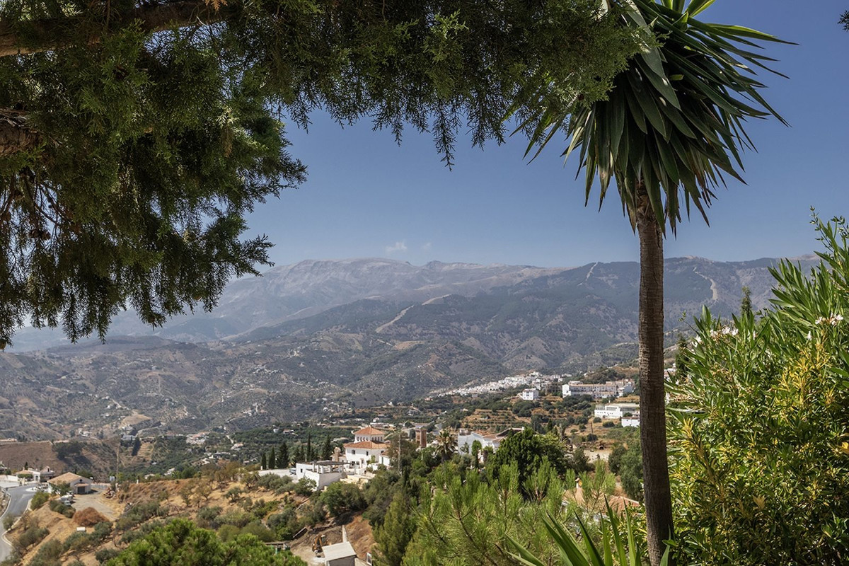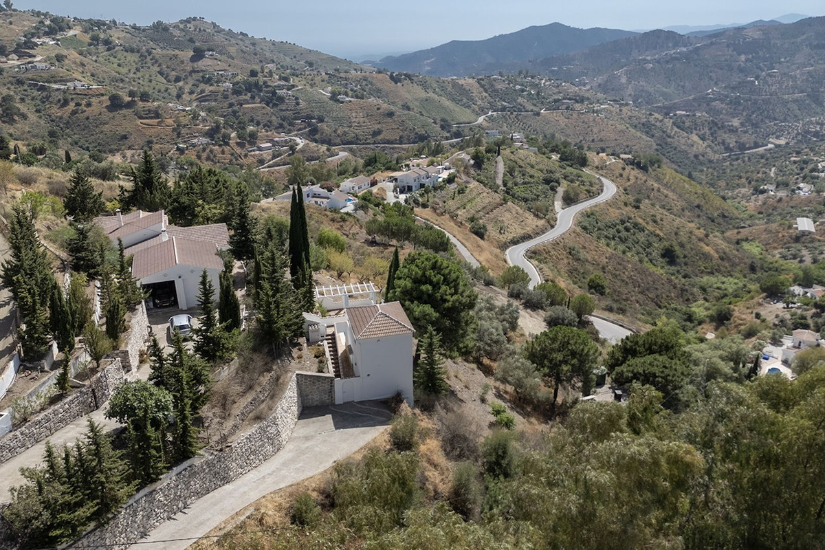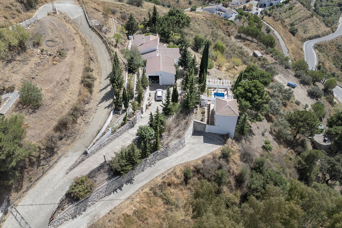 Depuis le jardin arboré, vous profiterez d'une vue panoramique spectaculaire sur Cómpeta, les montagnes environnantes, de magnifiques couchers de soleil et même la mer Méditerranée au loin. La propriété, sécurisée par un portail, est facilement accessible en quelques minutes en voiture grâce à deux allées bien entretenues. Vous pourrez stationner à l'extérieur ou dans un garage spacieux pouvant accueillir deux voitures et offrant un grand espace de rangement.