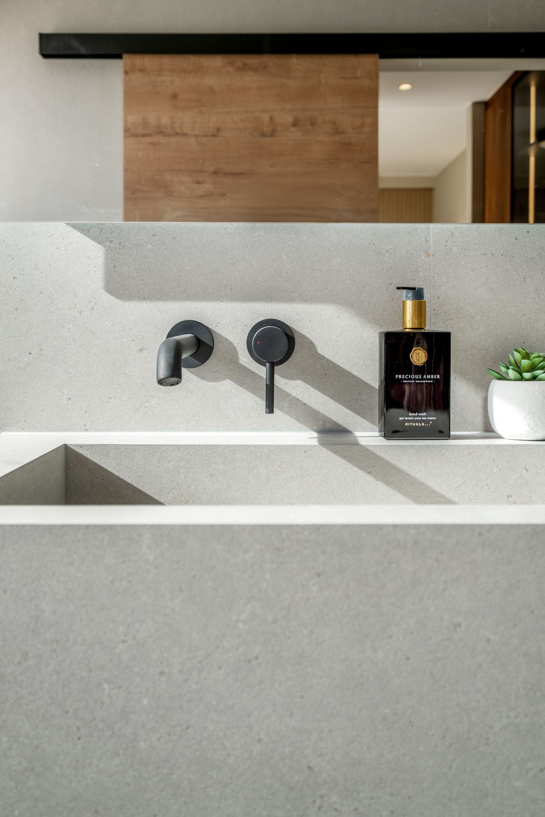 La cuisine, conçue sur mesure, est le cœur de la maison. Elle est réalisée avec des matériaux haut de gamme et des appareils électroménagers intégrés de qualité supérieure. Des textures soigneusement choisies et des tons chauds créent une atmosphère à la fois accueillante et raffinée dans toute la maison.